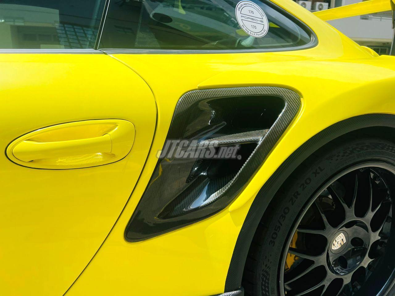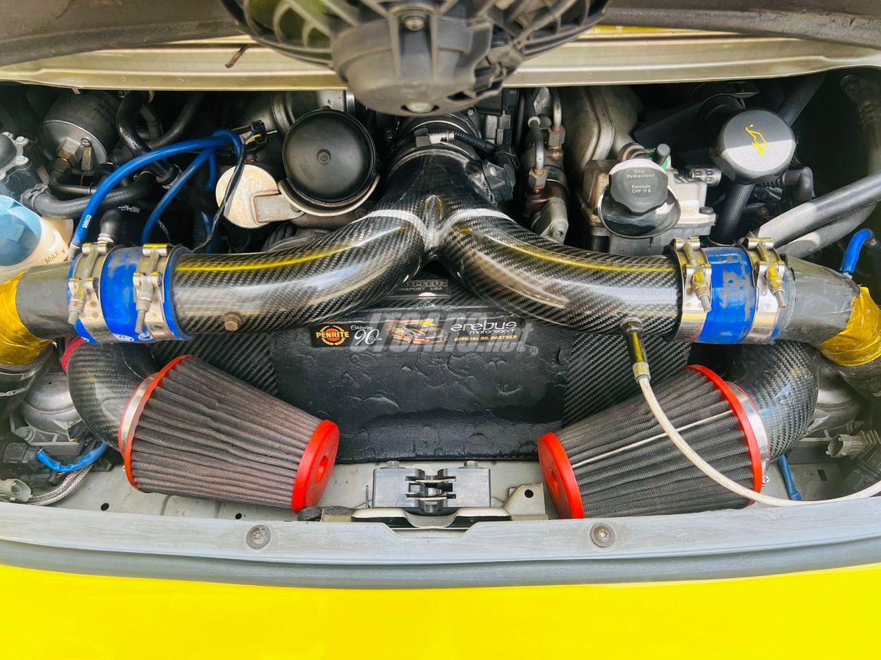 A striking 911 turbo with performance to match. From the factory it comes with the exclusive full leather interior. The aerokit has been upgraded with a custom GT3RS style look. The motor has been enhanced and the suspension is uprated accordingly.