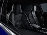 The SQ8 interior features standard 12-way adjustable power S-logo embossed front sport seats wrapped in Valcona leather with contrast diamond stitching, with available colors of Black, Rotor Gray, and Arras Red. Inside, SQ8 e-tron models are further differentiated with the addition of a performance themed Carbon square structure interior trim finish as standard, replacing the open pore wood offerings of the Q8 e-tron.