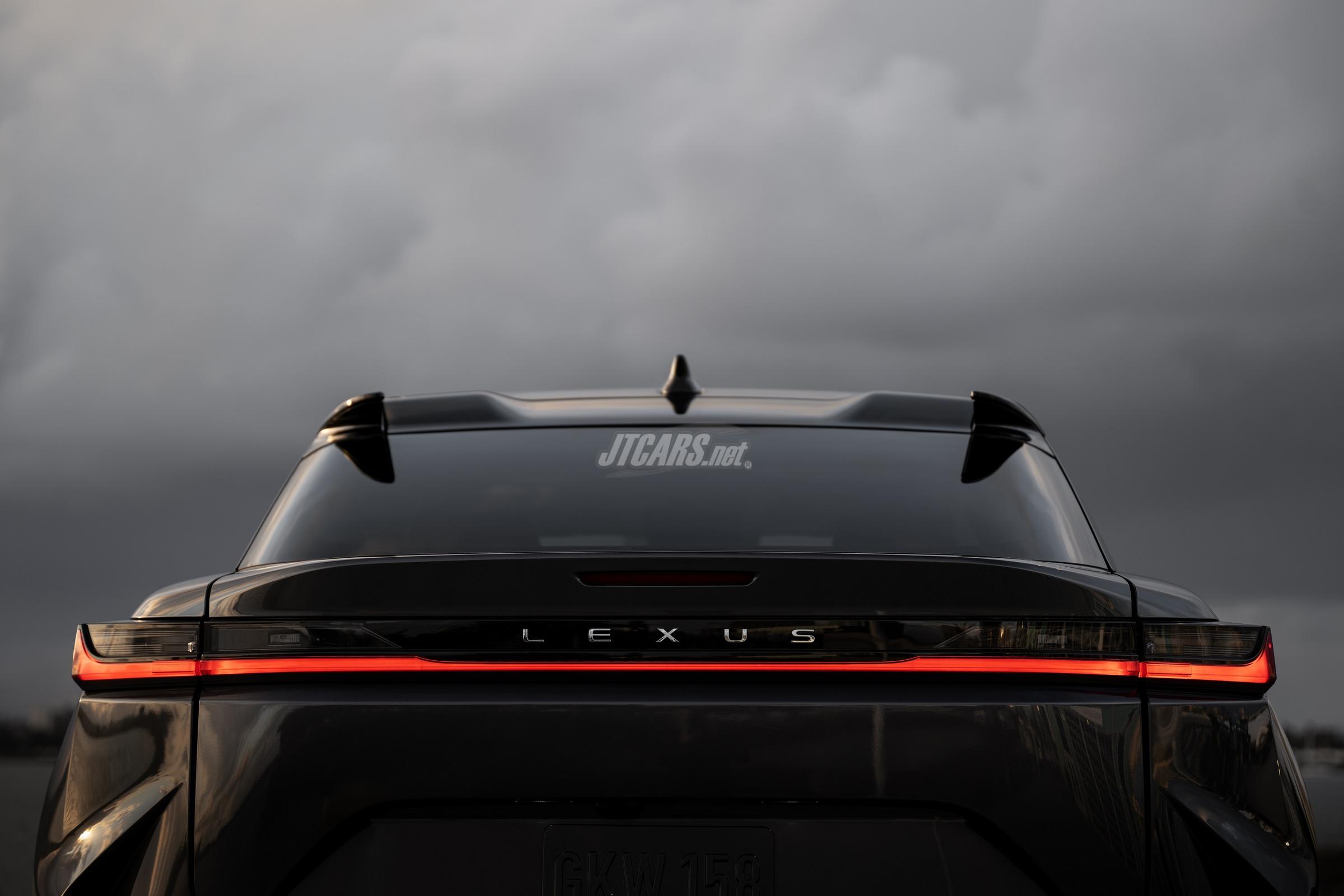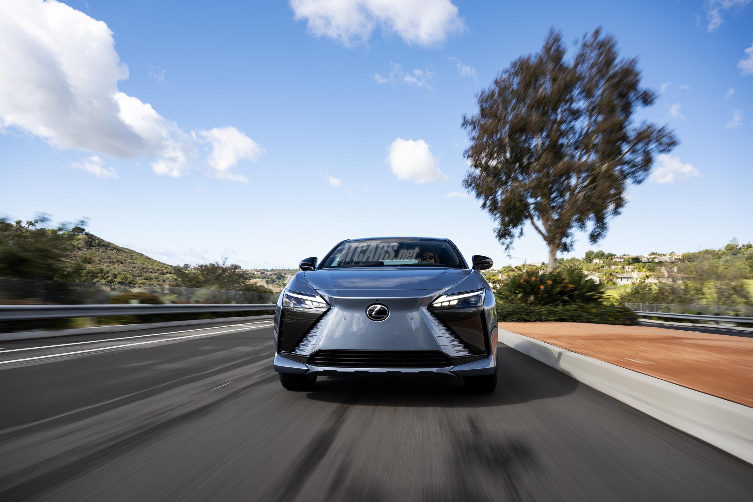 The RZ replaces the Lexus spindle grille with a spindle body design, first seen on the 2023 RX, featuring a roof spoiler to reduce aerodynamic force. Its roof, trunk, and undercover are shaped to minimize drag and smooth airflow.