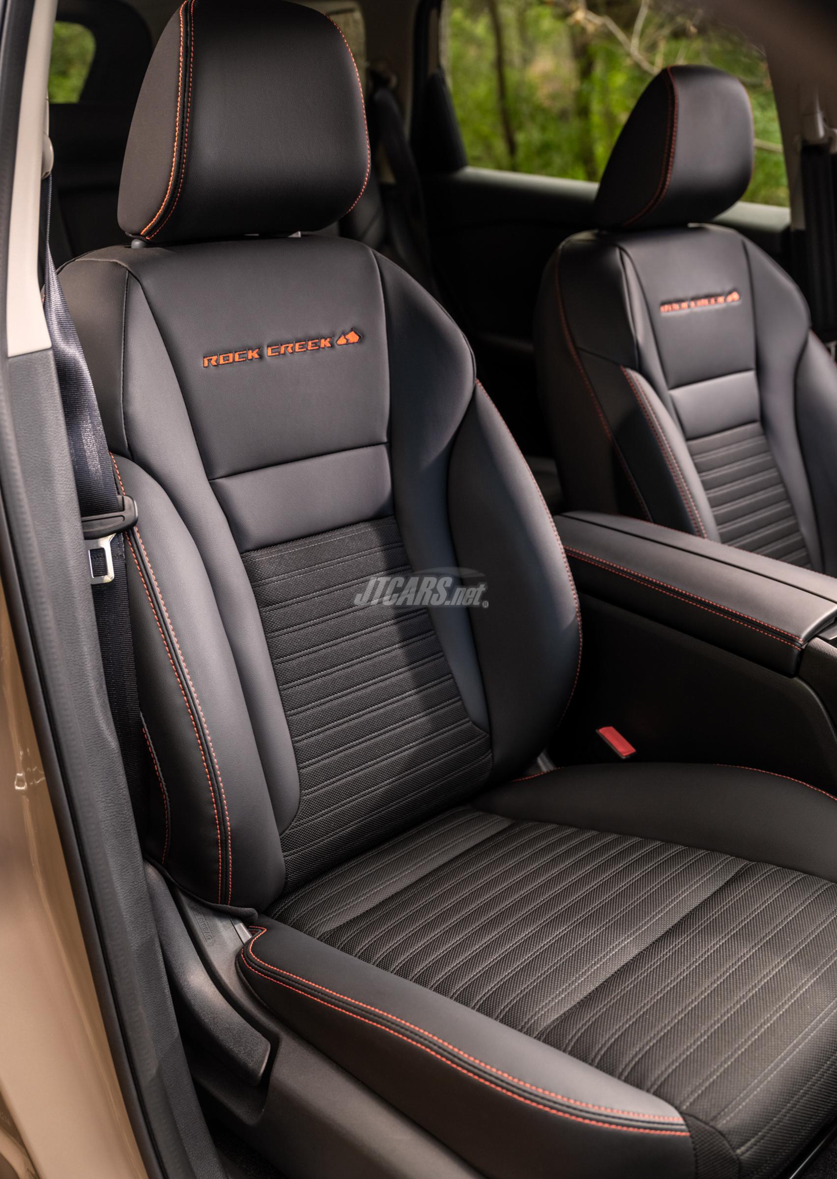 For drivers looking to go further, there's Rogue Rock Creek. This adventure-ready trim amplifies Rogue's appearance and capabilities with Falken Wild Peak all-terrain tires fitted to 17-inch satin black wheels, a unique front fascia, a unique gloss black front grille featuring silver accents, a redesigned front fascia featuring Lava Red accents, gloss black sideview mirrors and a tubular roof rack with integrated cross bars also accented in Lava Red.