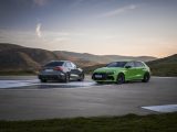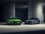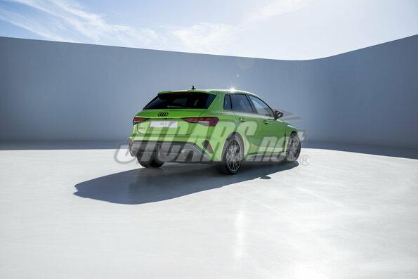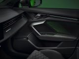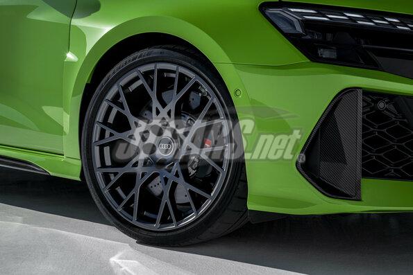 The expressive exterior is accentuated by the RS-specific exterior colors Kyalami Green and Kemora Gray, the new metallic paints Ascari Blue and Progressive Red, and, for the first time, Daytona Gray in a matt finish. The Singleframe and diffuser have a black finish, with a choice of high-gloss or matt. Continuing this theme, the RS 3 comes with matt-black 19-inch aluminum cast wheels in a 5-Y-spoke design as standard. Optionally, the rims are available in the motorsport design familiar from the RS 3 performance edition, with ten striking cross spokes, either in matt dark gray or in glossy metallic black in bicolor design. Even more individuality is offered by the carbon and high-gloss black packages, which adorn the front air intakes, the side skirts, and the blade above the diffuser. These are complemented by wing mirror covers in body color, black, or carbon.