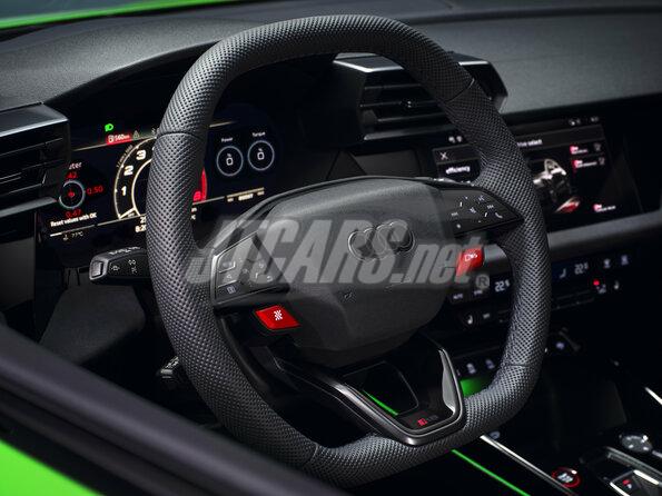 - Sporty, dynamic design: expressive front and eye-catching diffuser, carbon details, RS bucket seats, and flat-top and flat-bottom steering wheel
