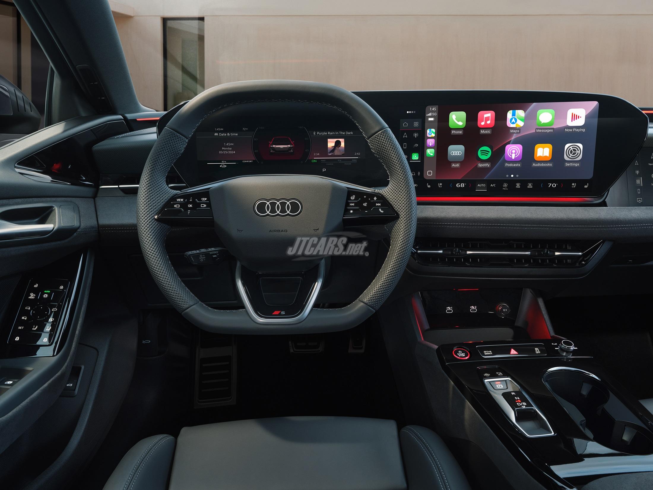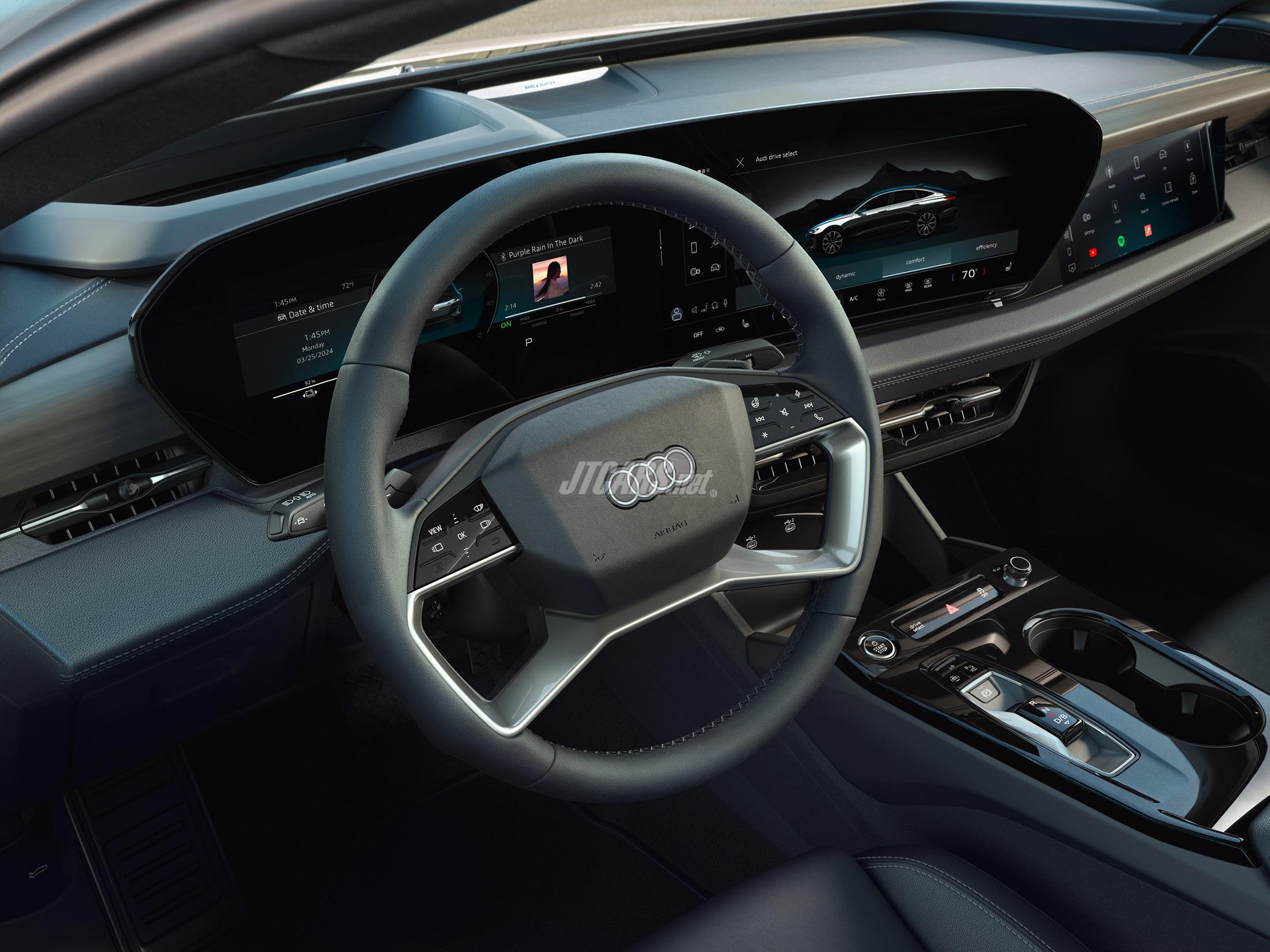 The Audi assistant offers proactive suggestions, smart routines, and intelligent lists, with future updates expanding online content access. A digital key allows drivers to lock, unlock, and start the vehicle using a smartphone or smartwatch.