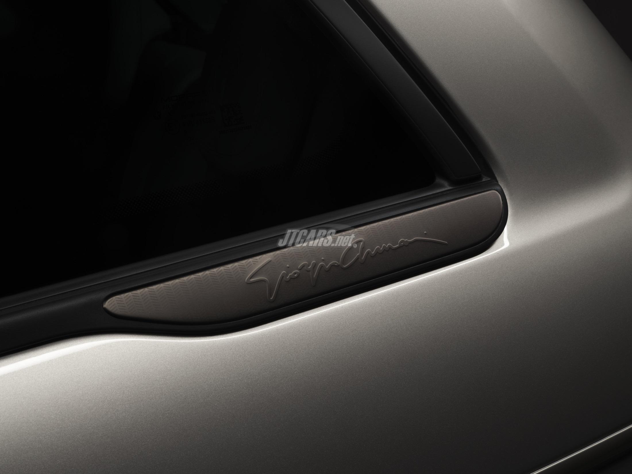 For the exterior, designers focused on achieving a sleek, monochromatic look that seamlessly aligns with Armani's aesthetic. The most striking feature of the exterior design are the wheels, custom-made to display the GA logo on a grand scale, ensuring the car makes a bold impression from a distance. The design enhances aerodynamic efficiency through a subtle three-dimensional surface. The wheels feature a sophisticated, burnished two-tone anodized finish and precise lateral grooves, adding elegance to the overall appearance.