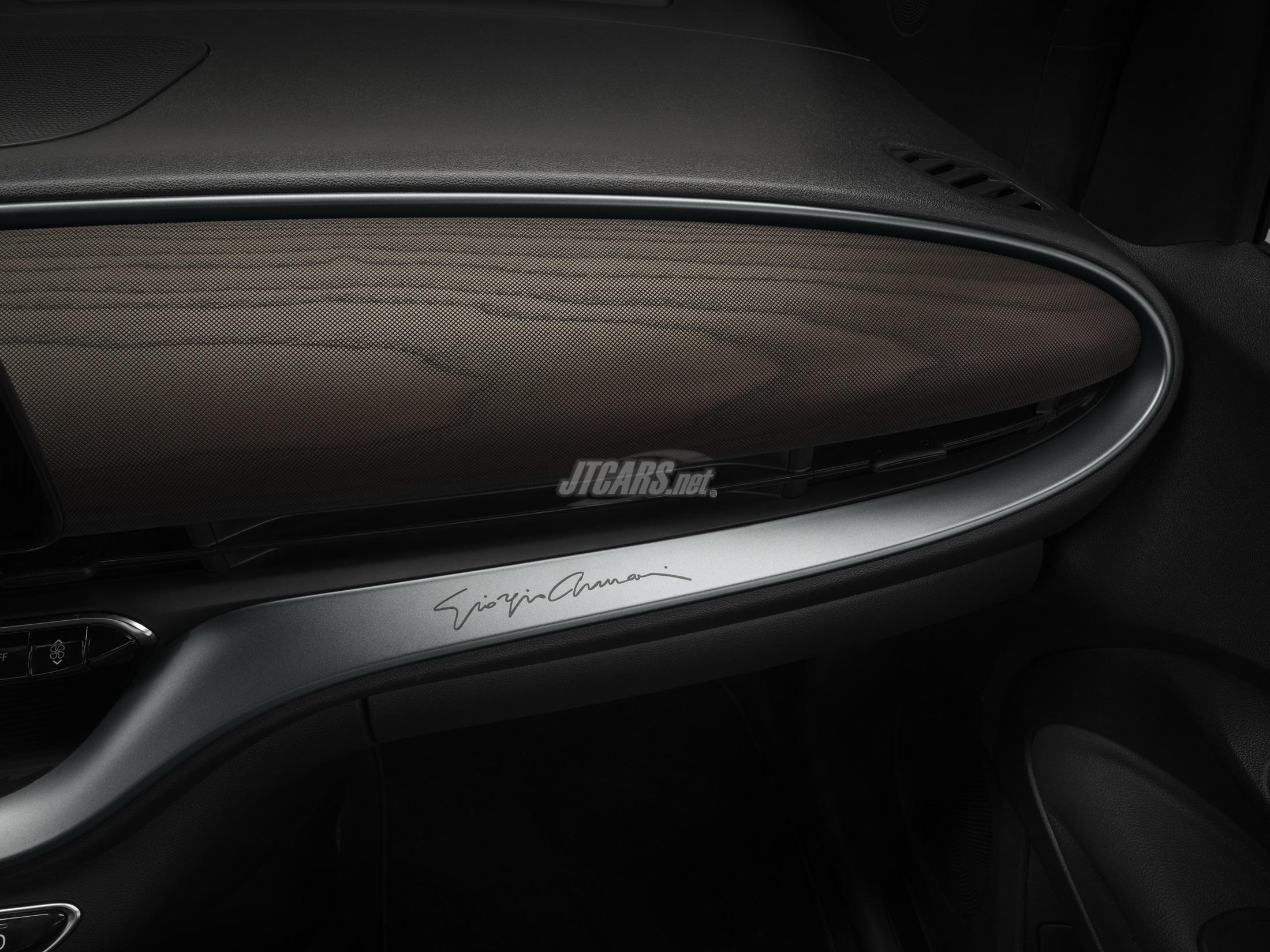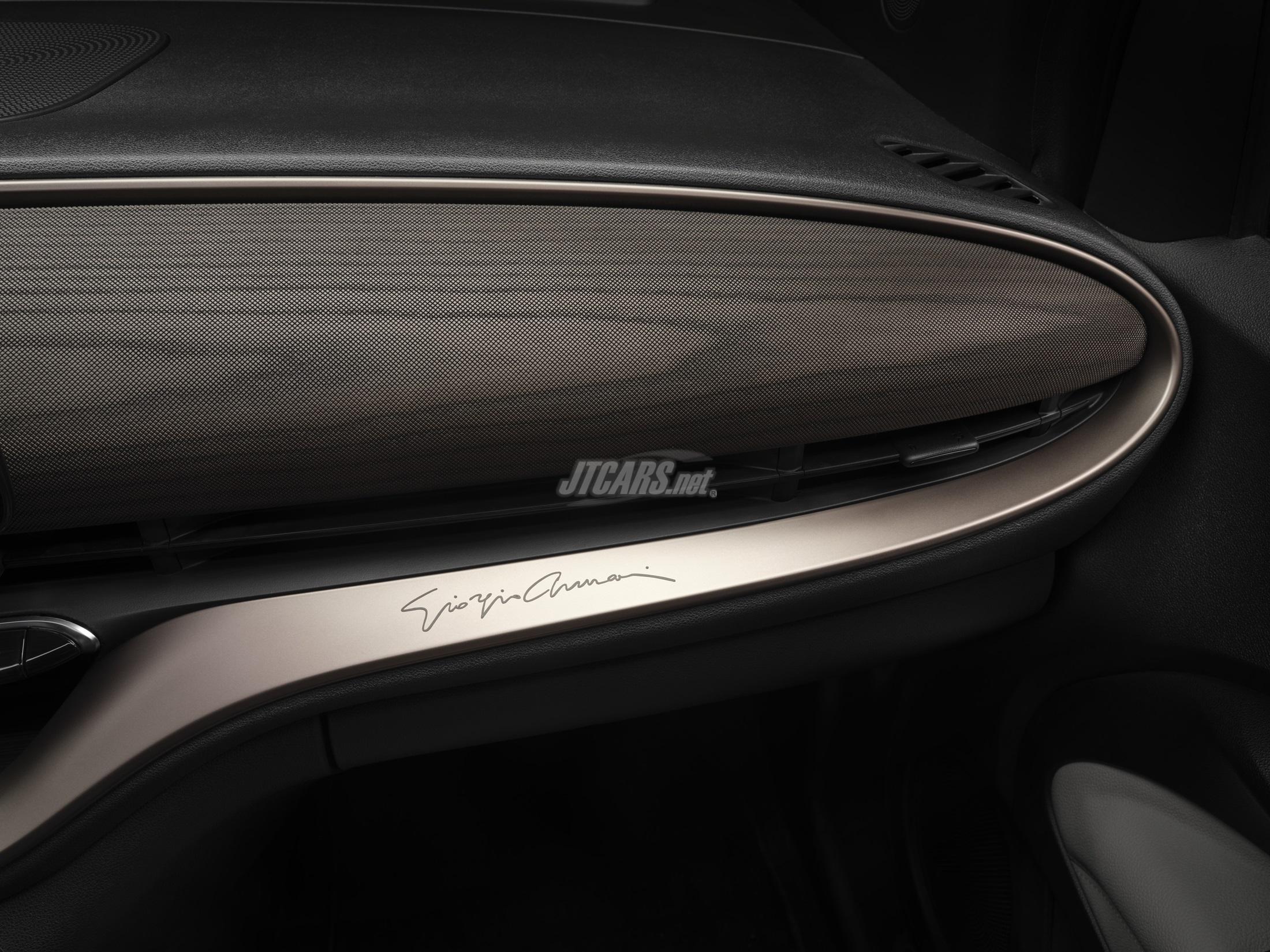 Two distinguishing and exclusive colors have been specially created, each underlying the car's elegant design. The first is a signature green, a unique and technically advanced color that mirrors Giorgio Armani’s style and refined taste. Both timeless and modern, the second is ceramic Greige, a sophisticated and unmistakable shade created by Armani that merges gray and beige.