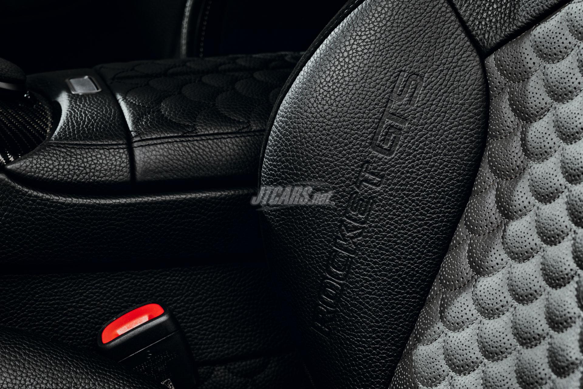 -- BRABUS "Black & Slate" with piping in "Black" and "Seashell Diamond" quillted and perforated with embroided "77" BRABUS logo for two front seats with headrests and rear seat bench with headrests