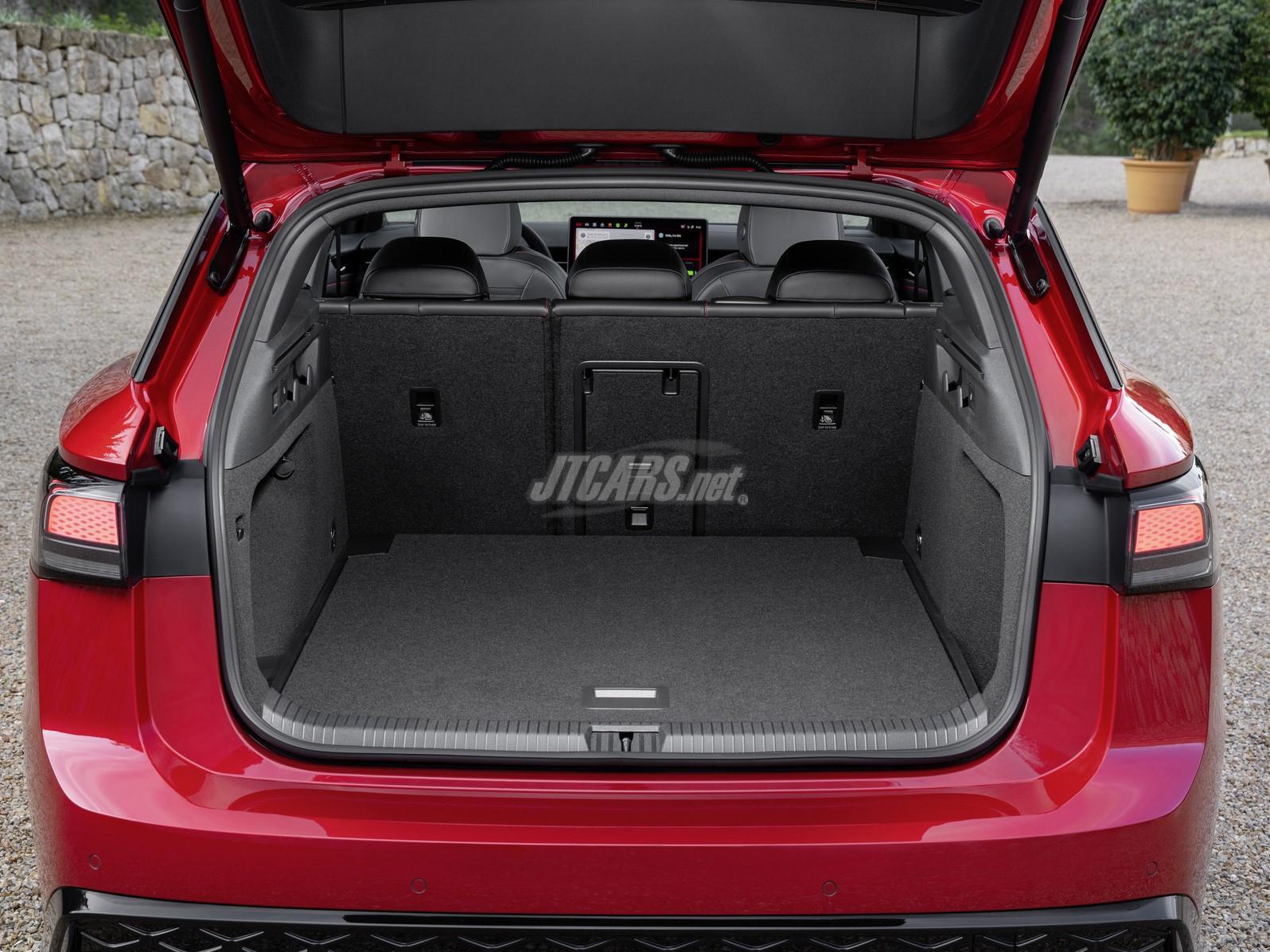 The design and equipment of the ID.7 GTX Tourer. The front of the ID.7 GTX Tourer is distinguished from the other models in the product line by a distinctive bumper with honeycomb grille and GTX-specific light graphics including illuminated badges. As with the ID.3 GTX, all black elements have a high-gloss finish. This additionally applies to the side sills and the lower area of the rear bumper in GTX design. As on the ID.3 GTX, 20-inch Skagen alloy wheels are fitted as standard on the ID.7 GTX Tourer. The interior is refined by features such as individualised seats (heated in the front) with perforated GTX lettering in the backrests, red piping on the seats, red seams on the dash panel and door trims as well as a GTX-specific multifunction steering wheel with red decorative stitching. The luggage compartment capacity of up to 1,714 litres is just as large as for the rear-wheel drive variants.
