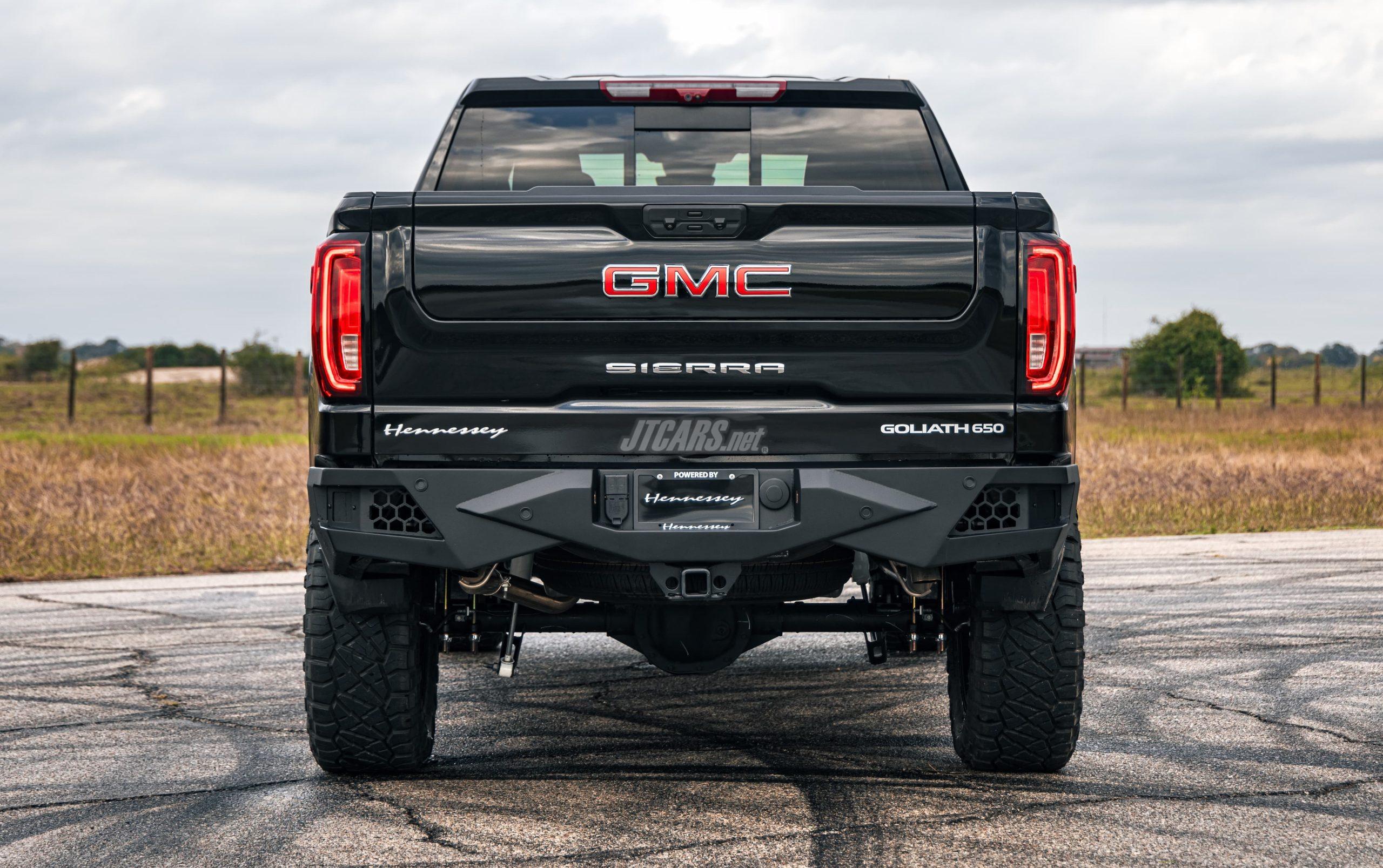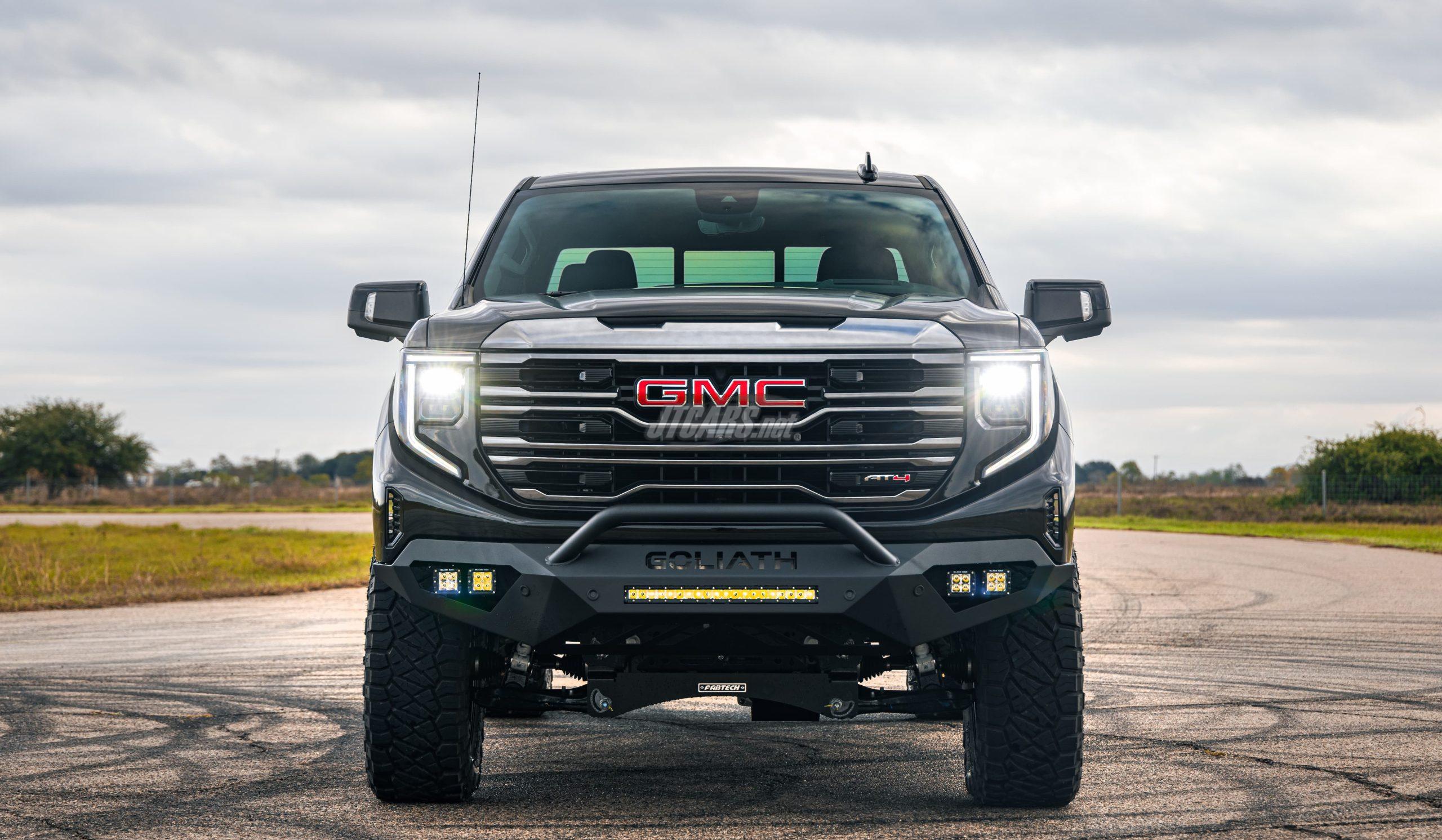 >> Available ‘GOLIATH OFF-ROAD’ package for GMC Sierra AT4 adds aggressive custom steel bumpers, LED light bar and driving lamps, and Hennessey 20-inch aluminum wheels with 35-inch off-road tires