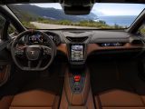 The Lamborghini Temerario features a redesigned interior with a new spaceframe chassis, offering more room compared to the Huracán. This design increases headroom by 34 mm, legroom by 46 mm, and visibility by 4.8°, accommodating passengers up to 200 cm tall. The front trunk holds 112 liters, enough for two cabin trolleys, with additional storage behind the seats.