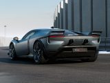 At the front, structured volumes and a horizontal fascia link the headlights, recalling 1980s Ferrari forms while creating a full-width spoiler effect. The rear is dominated by the dual-tail architecture integrated with the active wing, paired with sculpted bumpers, round tailpipes, and a pronounced diffuser for a performance-focused look. In plan view, the harmony of front flicks and twin tails defines the car’s outline, with the rear screen blending into the tails to accentuate the forward cabin. Custom forged wheels, developed with the aerodynamics team, feature functional profiles and diamond-cut details to optimise airflow while offering aesthetic flexibility.
