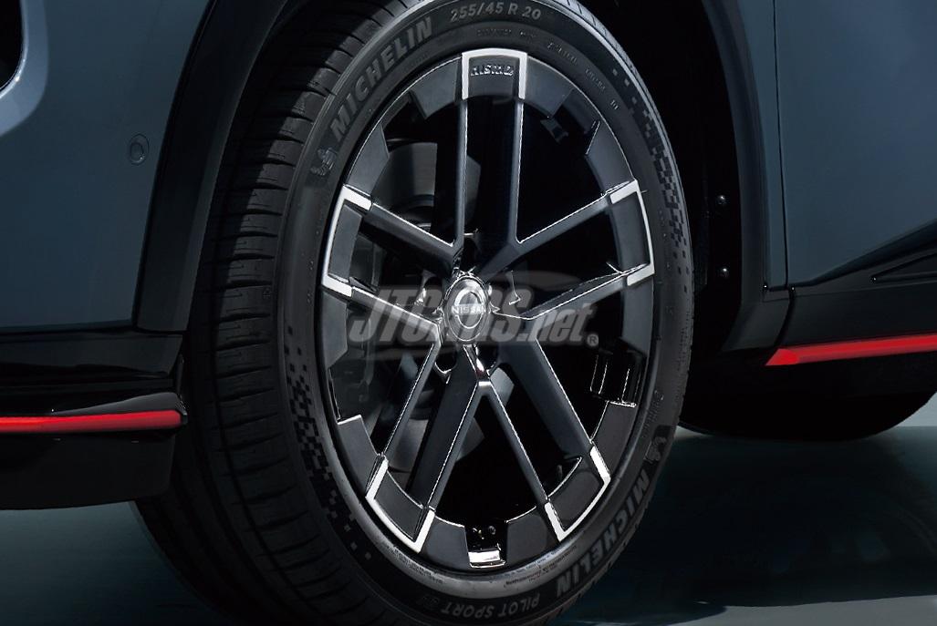 The X-Trail NISMO’s exclusive 20-inch aluminum wheels have a wide center opening to improve brake cooling and a flat outer rim to streamline airflow. Using Enkei’s MAT process, the wheels achieve both lightness and high rigidity.