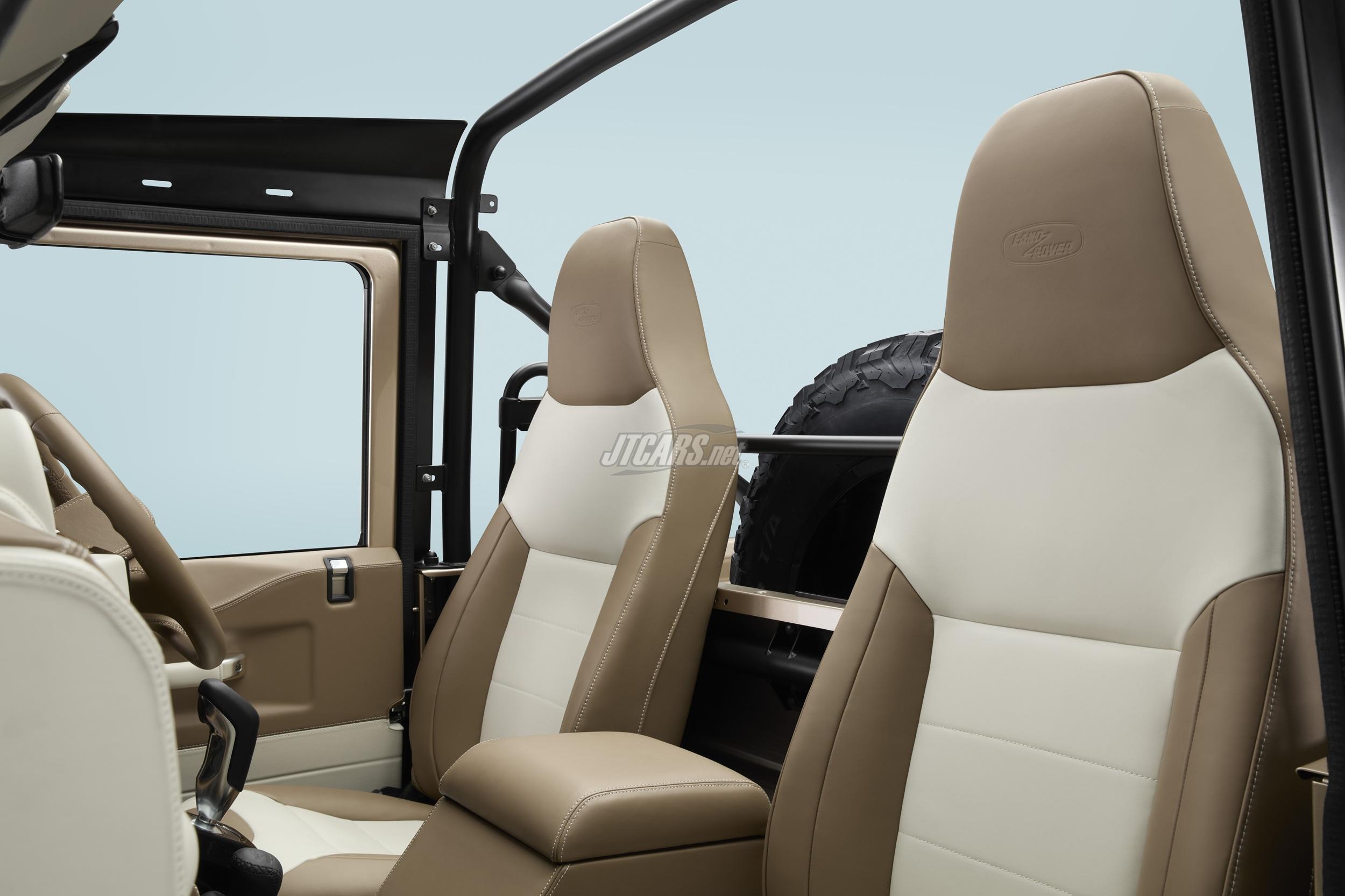 A bespoke canvas hood ensures a perfect fit, and is available in four colours, with Black as standard and Sand, Dark Khaki and Navy also available. Its unique design is inspired by the hood fitted to the last Defender to roll off the production line in 2016 and features authentic tie downs and webbing. The side and rear sections can be unzipped and rolled‑up for open air driving while retaining a degree of protection from the elements, and Land Rover Classic has added extra tie‑down points to keep the canvas tightly secured at highway speeds.