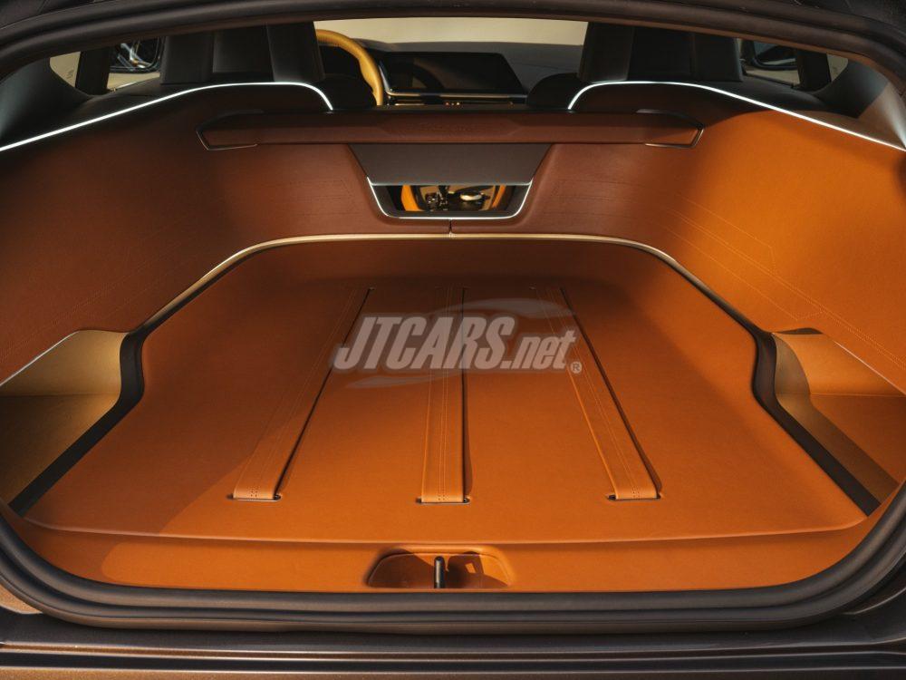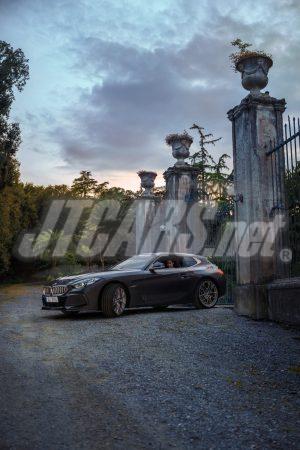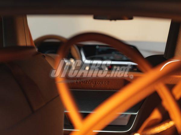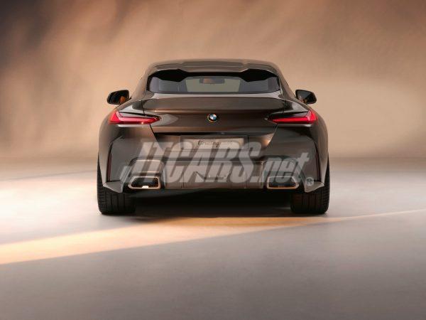 The Sparkling Lario exterior paintwork was specially created for the BMW Concept Touring Coupé. With embedded flakes of blue glass, its grey-brown hues achieve a unique impression of depth. The effect is completed by silver-bronze accents and the specially designed BMW kidney grille with longitudinal bars. The exclusive light-alloy wheels, measuring 20 inches at the front and 21 inches at the rear axle, provide a logical continuation of these color accents in the 20-spoke radial design. The intricate implementation and discreet gold-colored surfaces underline the vehicle’s elegant sporty character.