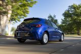 The MacPherson strut front suspension employs sophisticated techniques, including a strut bearing mounted coaxially with the kingpin axis. This feature allows smoother upward suspension travel, especially while traversing bumps, resulting in comfortable steering feel. The multi-link rear suspension is highly adept at comfortably absorbing bumps while prioritizing agility. The result: A Corolla Hatchback that delivers an uncanny blend of balance, composure and feel that invites the driver to seek out twisty roads.