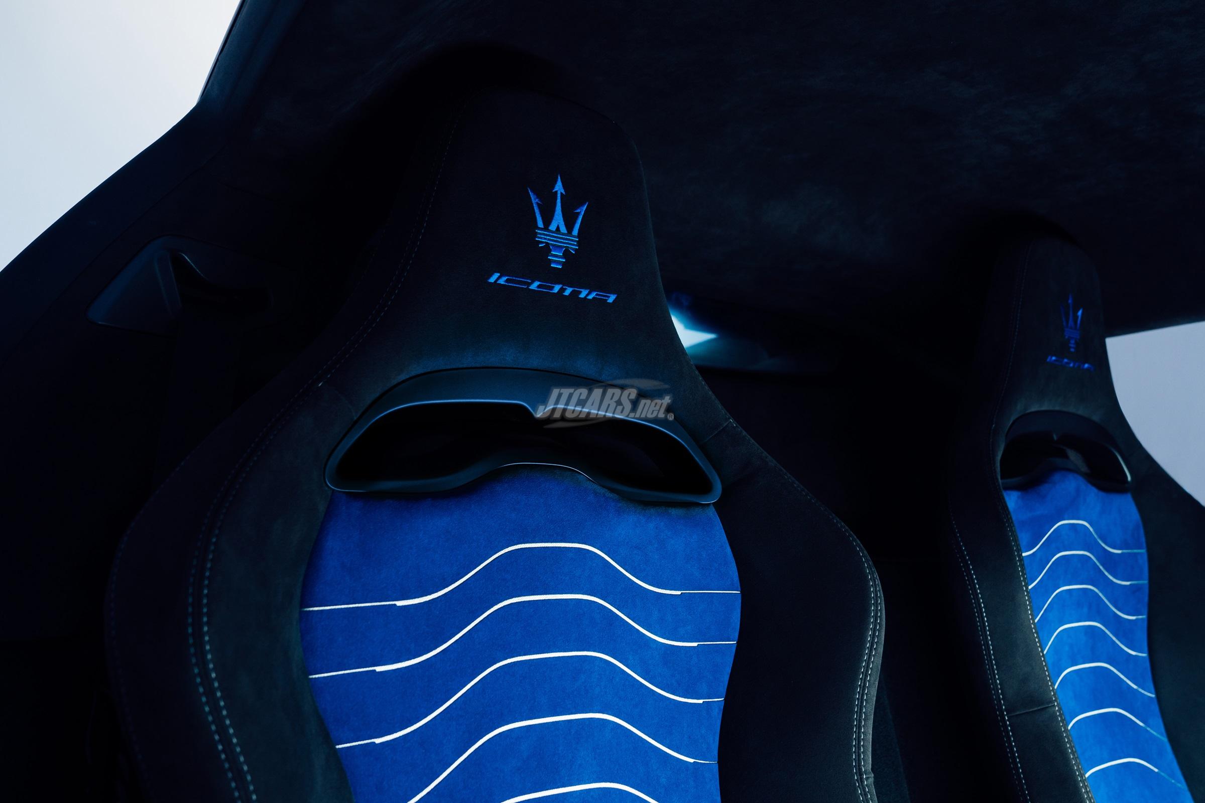 The Fuoriserie package for the two special series is completed with racing interiors: lightweight 4-way monocoque racing seats – the central section in Nero/Blu on a silver background for Icona, or in Nero on a silver background for Leggenda – and Trident embroidery on the headrest together with the words “Icona” or “Leggenda”, depending on the model.