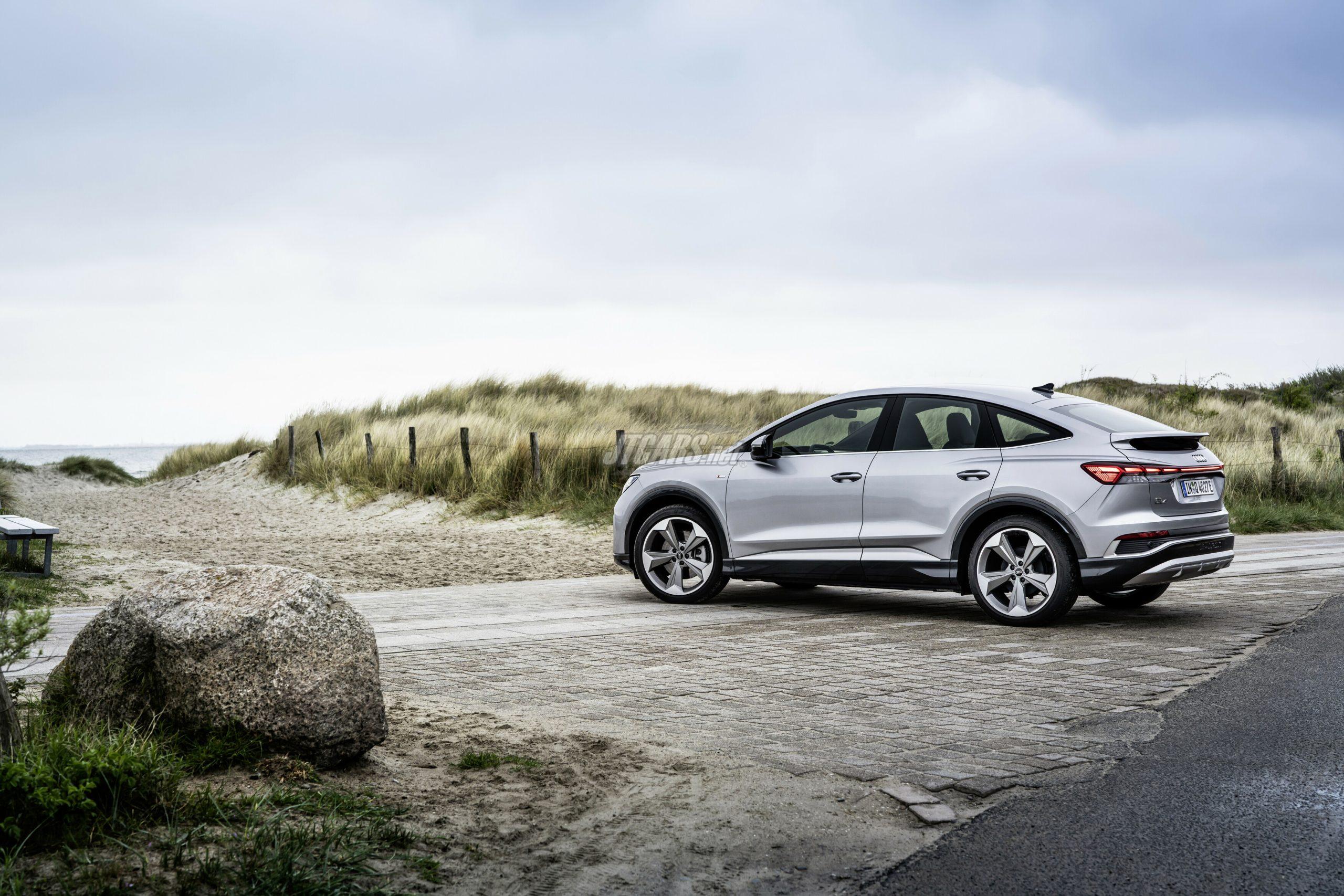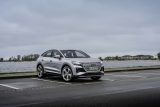 The Audi Q4 45 e-tron and the Audi Q4 Sportback 45 e-tron with rear-wheel drive produce 210 kW (286 PS) and accelerate from zero to 100 km/h (62 mph) in 6.7 seconds. The Audi Q4 45 e-tron quattro and the Audi Q4 Sportback 45 e-tron quattro with 210 kW (286 PS) take 6.6 seconds. The top-of-the-range models Audi Q4 55 e-tron quattro and Audi Q4 Sportback 55 e-tron quattro models with 250 kW (340 PS) accelerate from a standstill to highway speed in a mere 5.4 seconds. The top speed for all models is now 180 km/h (112 mph).