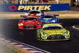 At the start of the 2023 Bathurst 12 Hour, traditionally before dawn, Maro Engel (#999), Maximilian Götz (#888, GER) and Luca Stolz (#75) commandingly kept their positions at the front of the 24-car strong field. Subsequently, the trio was able to pull a slight gap, together with three opponents. However, frequent yellow flag situations towards the end of the opening third of the race bunched up the field time and again.
