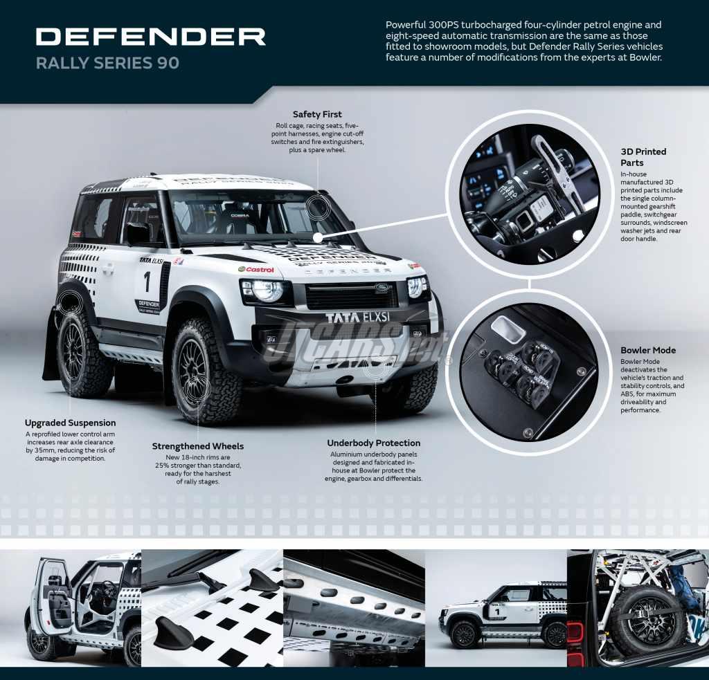 The rally-ready Defenders campaigned in the series are closely related to P300 production models with added safety features, including race-specification seats, FIA-approved roll cage and fire extinguishers. They use the same powerful 300PS Ingenium petrol engine, responsive eight-speed ZF automatic gearbox and advanced All-Wheel Drive system as showroom models, with all mechanical enhancements, rally support, competition entries and vehicle logistics taken care of by an expert team from Bowler*.