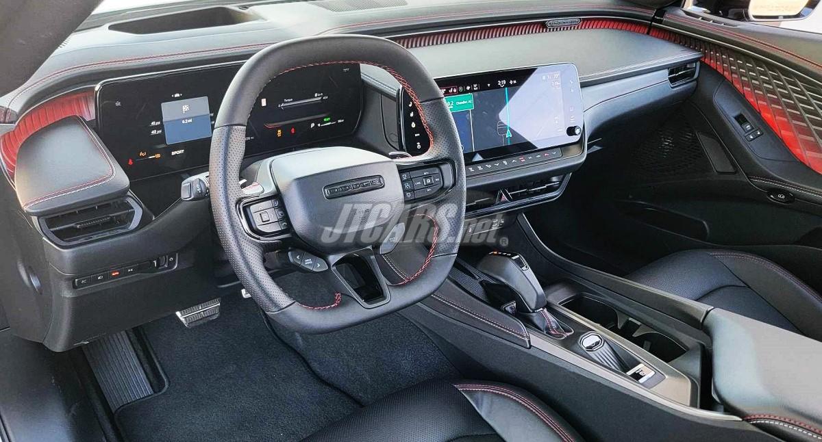 When starting the car, the screen lights up with an animation featuring the new Dodge Fratzog logo, complemented by a distinctive exhaust note. The Fratzonic chambered exhaust roars to life, drawing attention, especially in Sport mode with a few revs.