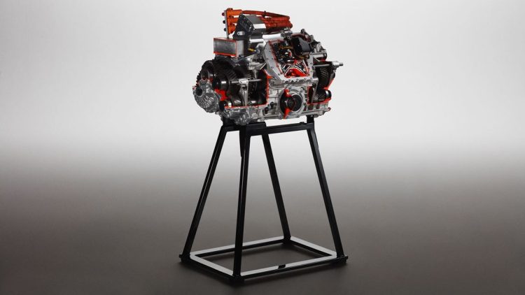 The double-clutch gearbox is extremely compact; just 560mm long, 750mm wide and 580mm high. Total weight is just 193 kg, which includes a new component fundamental to the car’s hybrid architecture: the rear electric motor, with maximum power of 110kW and peak torque of 150Nm.