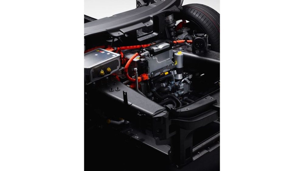 The combined torque from the combustion engine and three electric motors offers performance levels that are unique even within the domain of super sports cars, with 725 Nm produced by the internal combustion engine and 350 Nm from each of the front electric motors. In total, the power unit delivers a combined maximum output of 1015 CV.