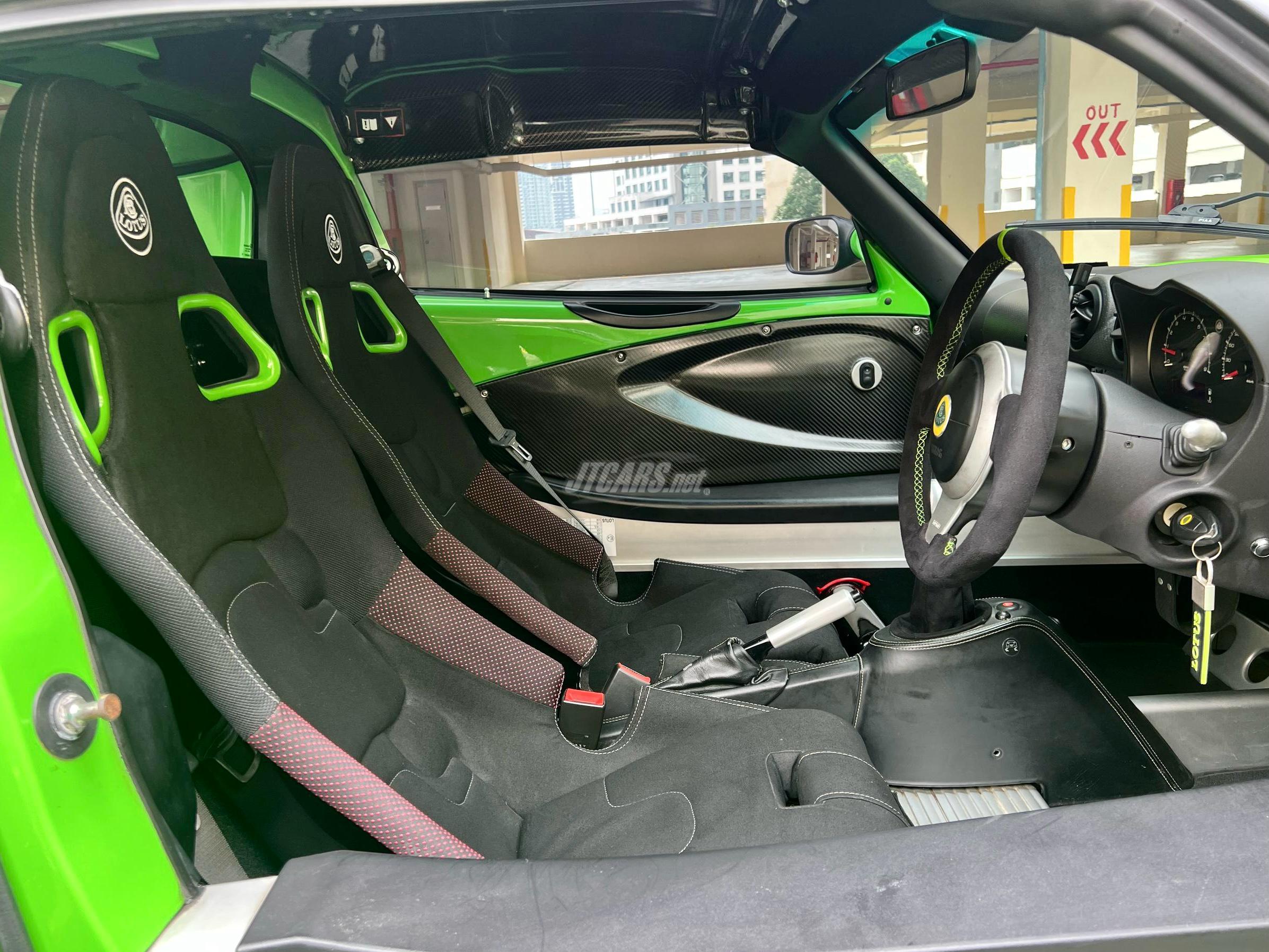 Exige Rear Spoiler, Carbon Side Pods, Front Splitter, Side Skirts, Front Dive Plates, Carbon Inner Door Panels, Hans Sports Seats with Fire Extinguisher, AGM Light Weight Battery, Odessey Light Weight Battery Bracket, Larini Exhaust, New Brake Hose & Fluids, Sports Alloys, Advan Neova Ad08r Tires, Cold AC, Retrimmed Interior in Leather and Sportex.
