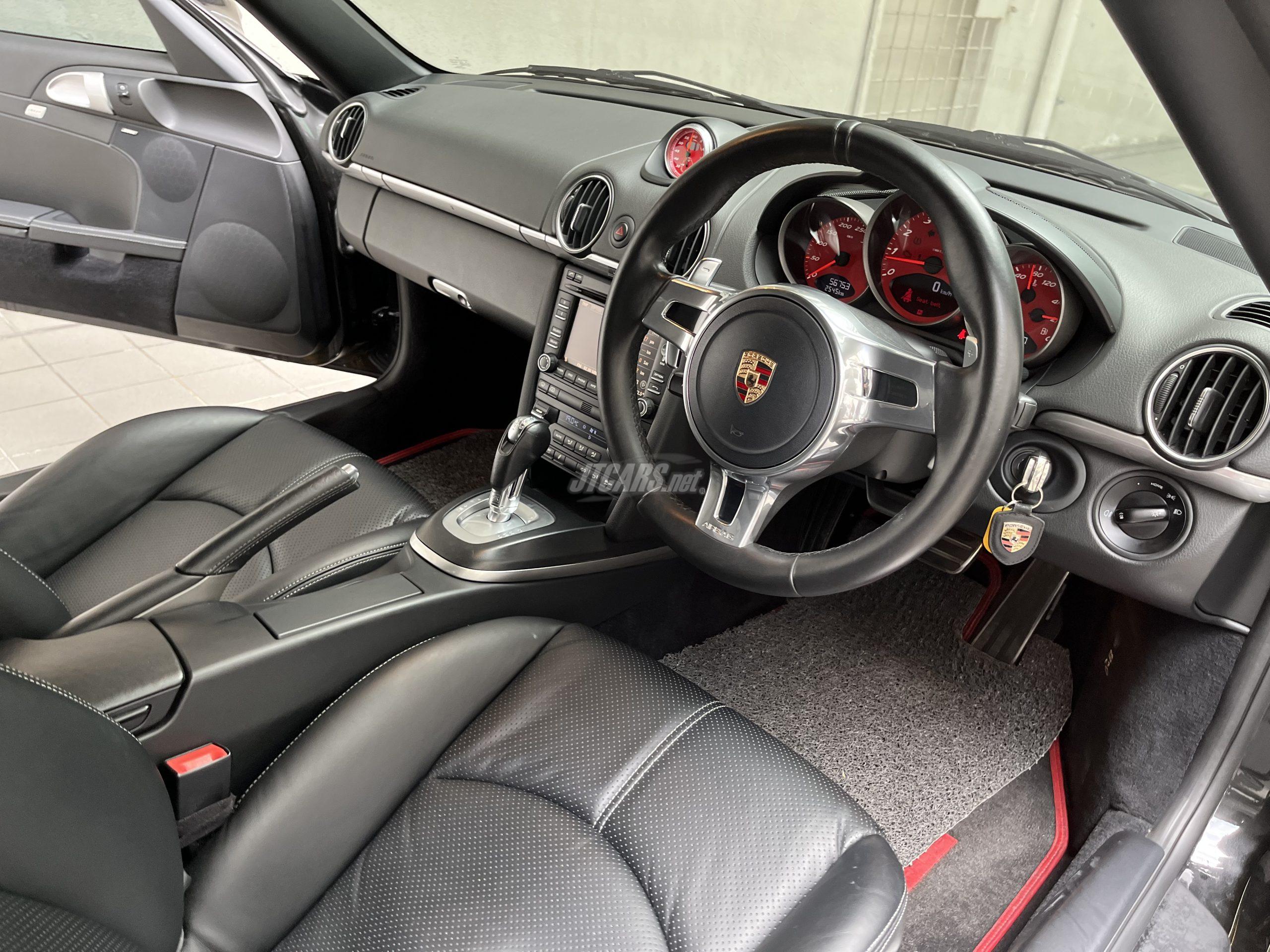 A high specs Porsche 987.2 Cayman S presented in Black. It is supplied new from Porsche Malaysia and comes with desirable options such as Sports Chrono Plus, PASM Sports, Sports GT Steering, Sports Exhaust, Sports Seats, Factory Red Dials, BOSE Surround Sound and more. The owner has recently replaced 4 absorbers and suspension arms. The car is reported to be driving well. The engine and gearbox operate smoothly and the car is accident free.