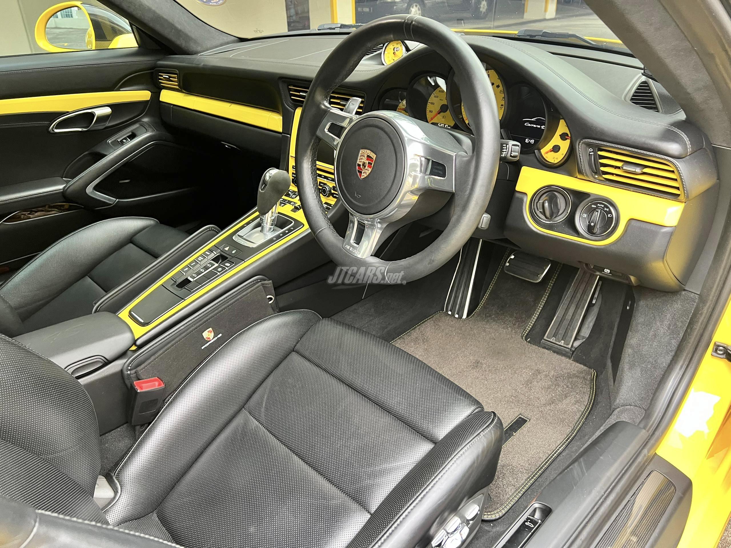 The highest specced Porsche 991.1 Carrera 4S 3.8 in Malaysia presented in Racing Yellow matched with exclusive body colored interior trim. This car has desirable options such as the Factory Powerkit, Ceramic Brakes, Sports Design Aerokit, Blackened PDLS Headlights and more. The car is serviced in Porsche Official Center. The windscreen has recently been replaced. The car has only done 52k kms and is accident free.