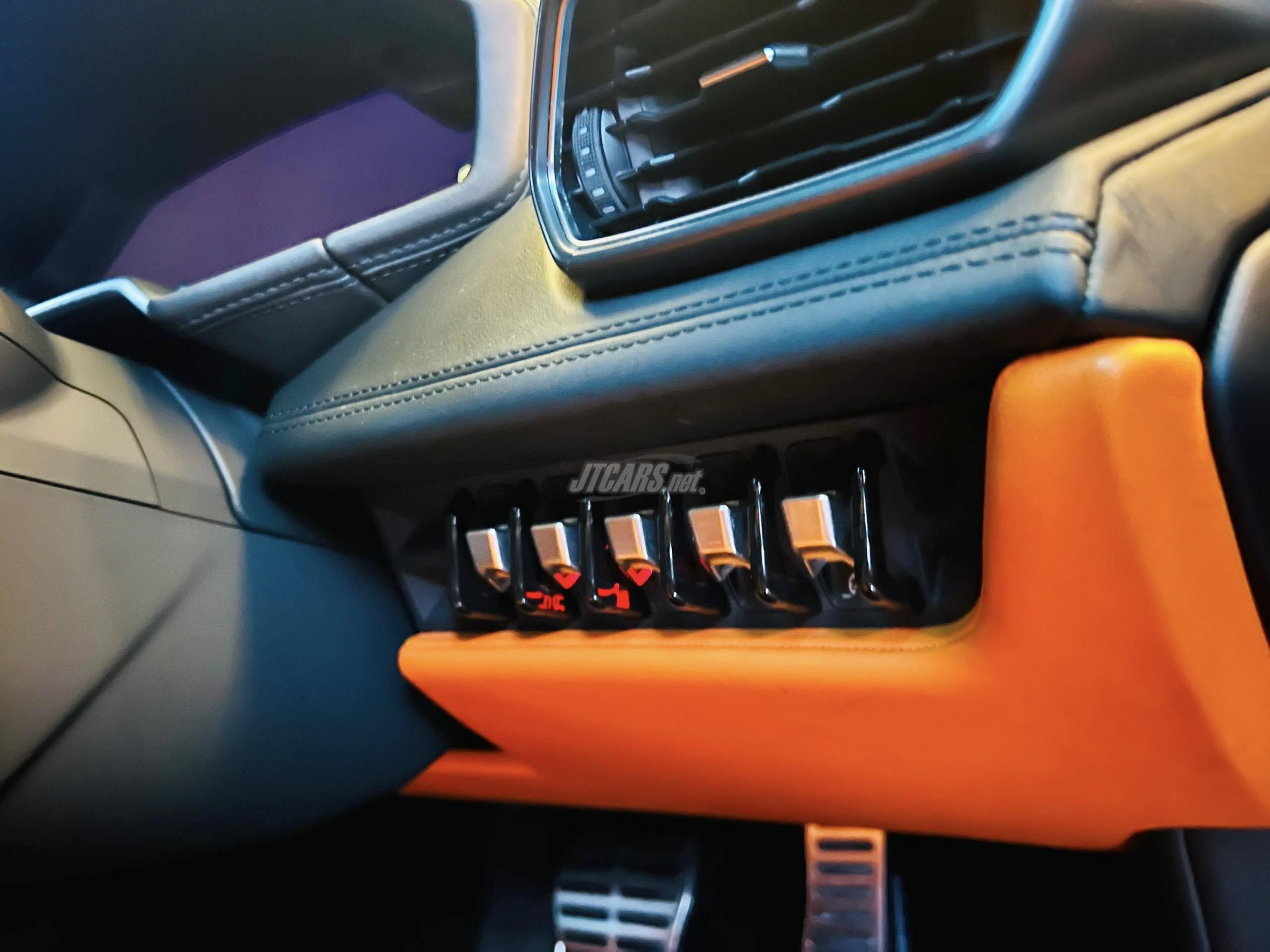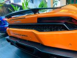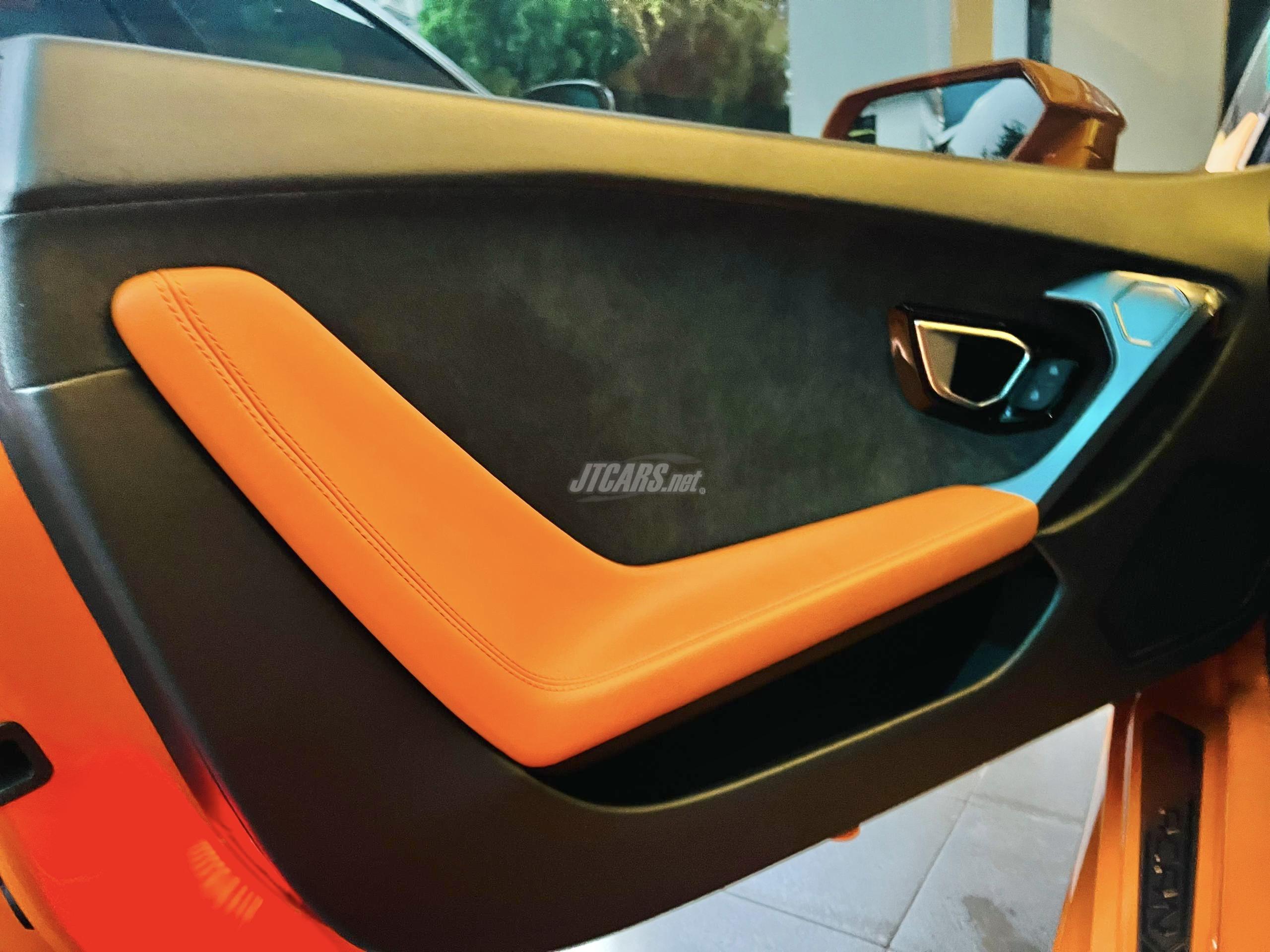 A UK specs LP610-4 presented in Arancio Borealis. Primarily stock, this car has the factory front lifter, electric seats, sports exhaust and the seller has also fitted a rear spoiler with some cosmetic decals.
