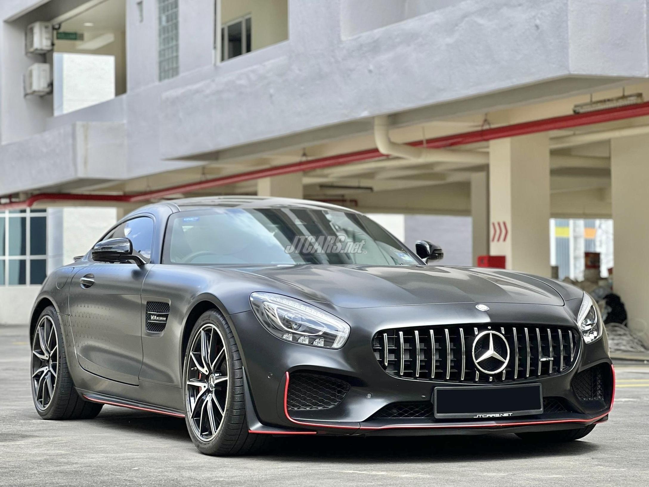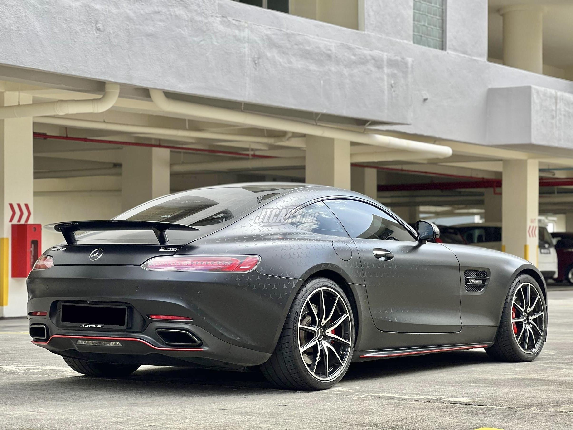 An imported new AMG GTS Edition 1 presented in a very neat Matte Black wrap inspired by the AMG Pro series. This Edition 1 is fitted with the track pack, sports seats, carbon interior, contrast red stitching, Burmester surround sound system and more. The car is also remapped by DMS and the torque is very strong at the lower RPMs. The car is accident free and the original color underneath is Hyacinth Red Metallic.