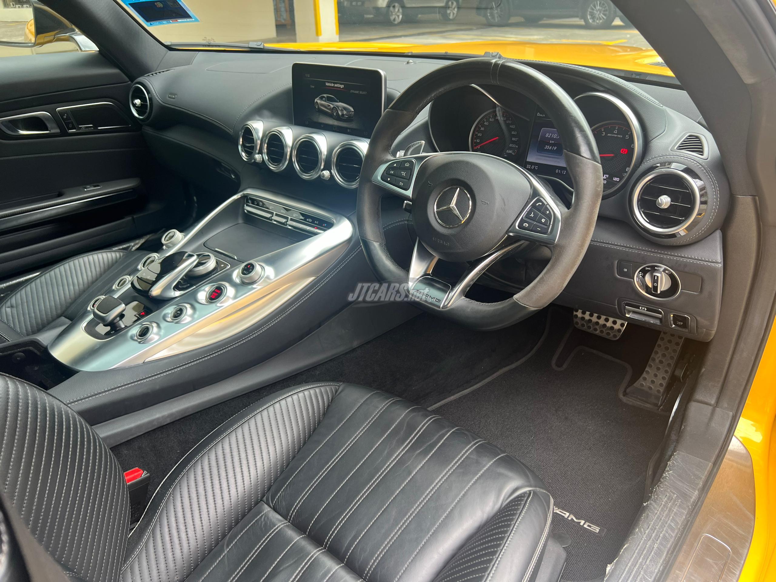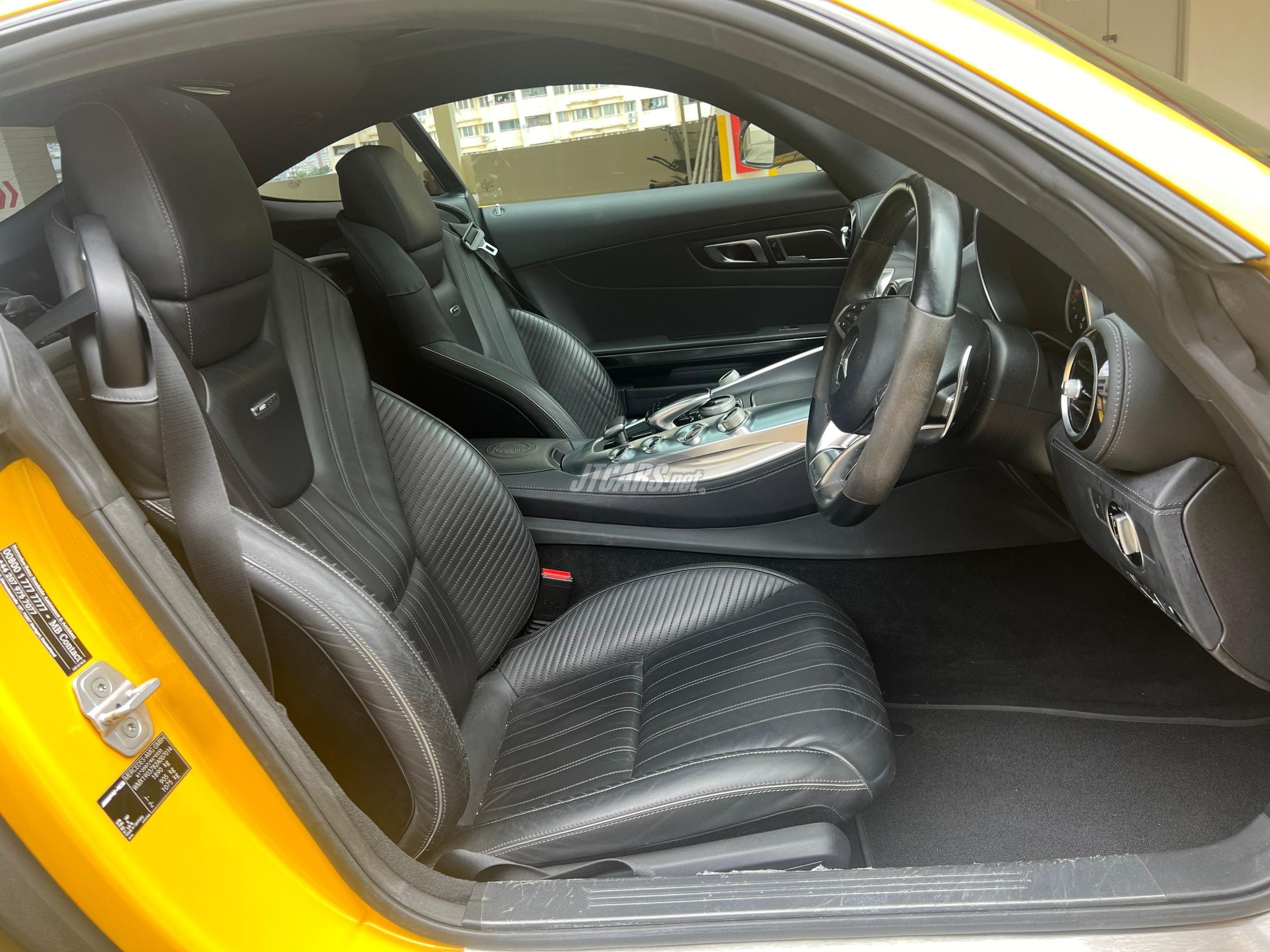 A neat UK specs AMG GTS presented in a very unique factory AMG SolarBeam Yellow Metallic with black interior. It has been with its first owner in Malaysia for the past 6 years and the car has been well maintained at Cycle and Carriage since. The last service was performed on March 2024; just a few months ago. The car has not changed much under this owner and the car is primarily still bone stock. There is a noticeable scratch on the front left bumper, the sports alcantara steering wheel has a mild wear and the 4 tires should be replaced due to age. The interior is very neat and non-smoking. The car is accident and flood free.