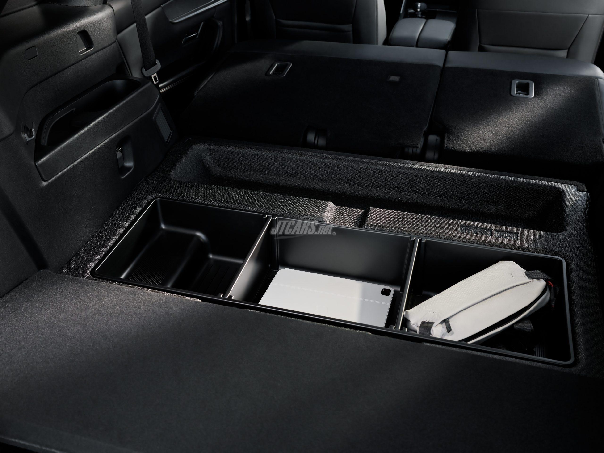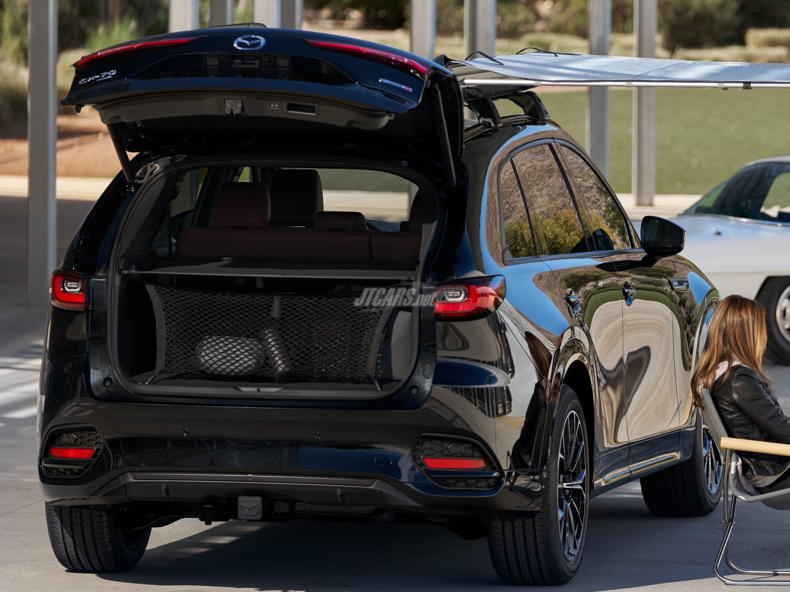 Effortlessly blending the ideas of function and form, CX-70 implements several new features to Mazda, all designed to improve everyday utility and encourage our customers to engage with their active lifestyles and improve the driving experience. This includes remote-folding rear seats, which allows for easier loading into the rear of the vehicle, as well as a rear cargo area that has been optimized for storage with additional compartments, hooks for bags and other equipment. Along with that is a unique sub-trunk design that allows CX-70 owners to stow valuables and other small items out of sight.