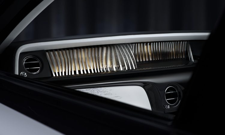 Completing the exterior, the Phantom disc wheels each bear 25 engraved lines, collectively forming 100 lines in tribute to Phantom’s centenary and the 25 motor cars in this exclusive series.