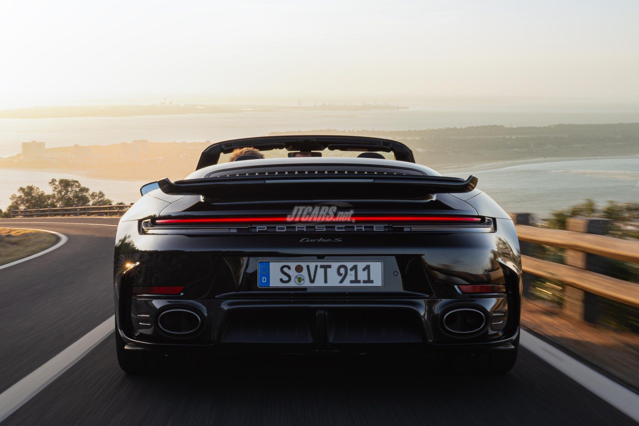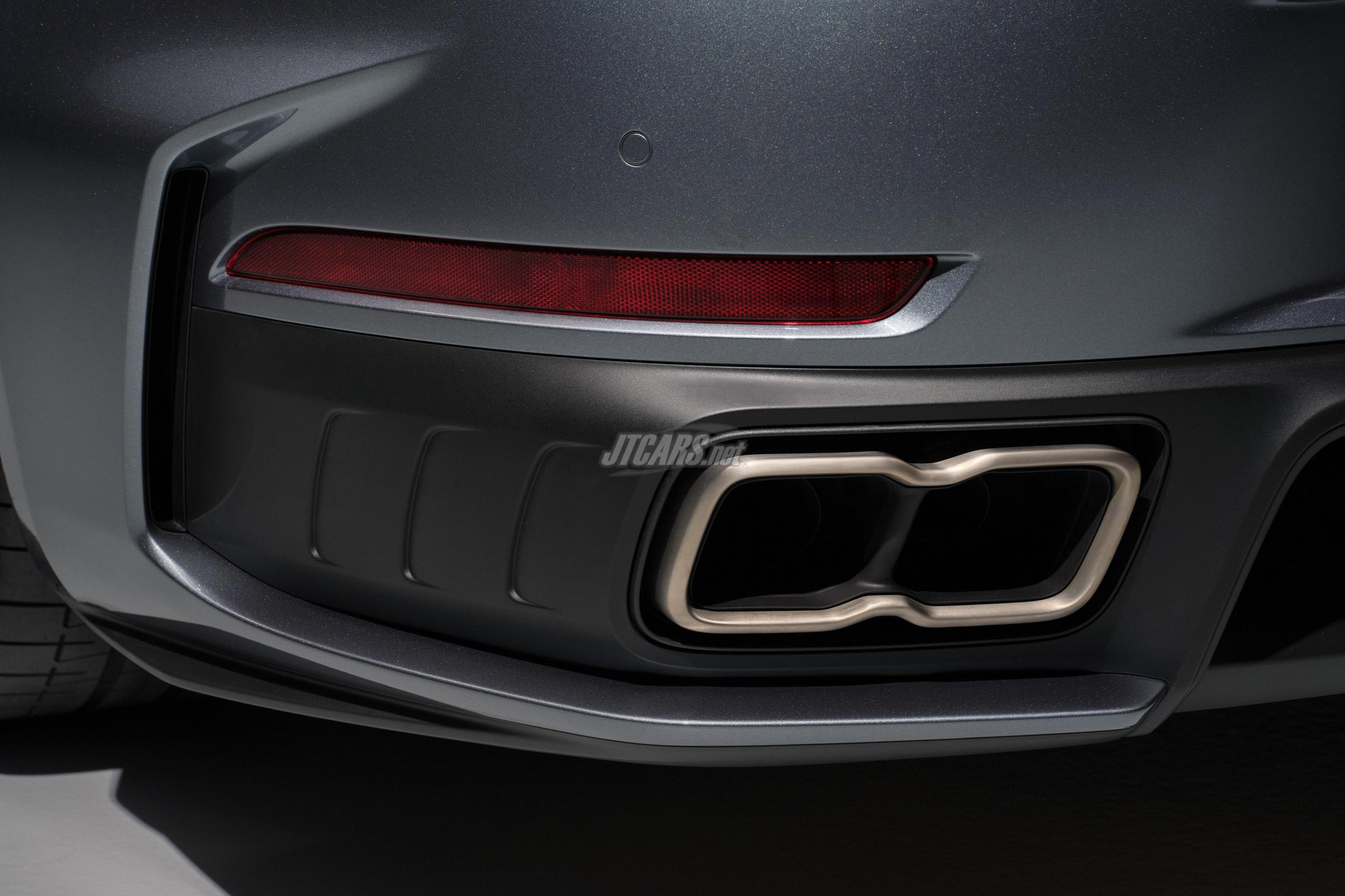 A new titanium sports exhaust, 6.8 kg lighter, delivers a sound composed specifically for the Turbo S. Internal engine tweaks and asymmetrical timing give the 3.6-litre boxer a more distinctive, throaty character.