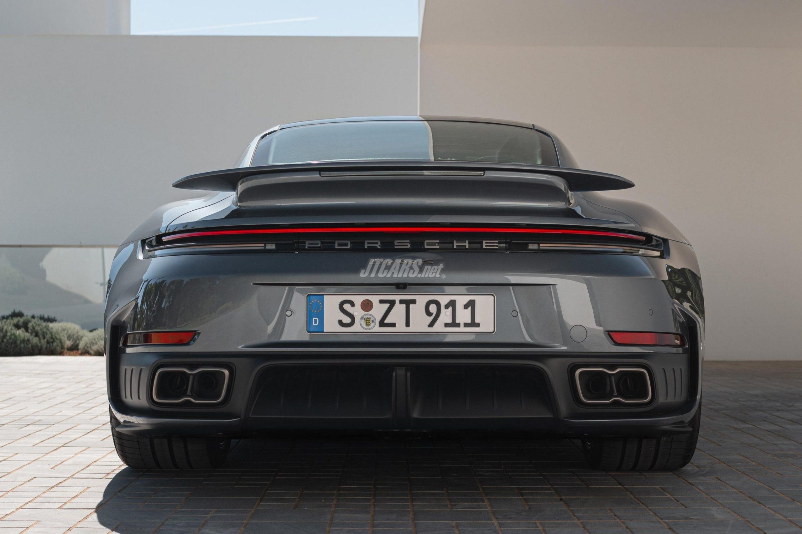 The new 911 Turbo S debuts Porsche’s cross-series Turbo design strategy, with exclusive Turbonite accents on the crest, lettering, rear wing inserts, window strips, and wheels. Wider bodywork, new rear fascia openings, and titanium exhaust tailpipes emphasise its distinctive stance, while optional oval trims add further exclusivity.