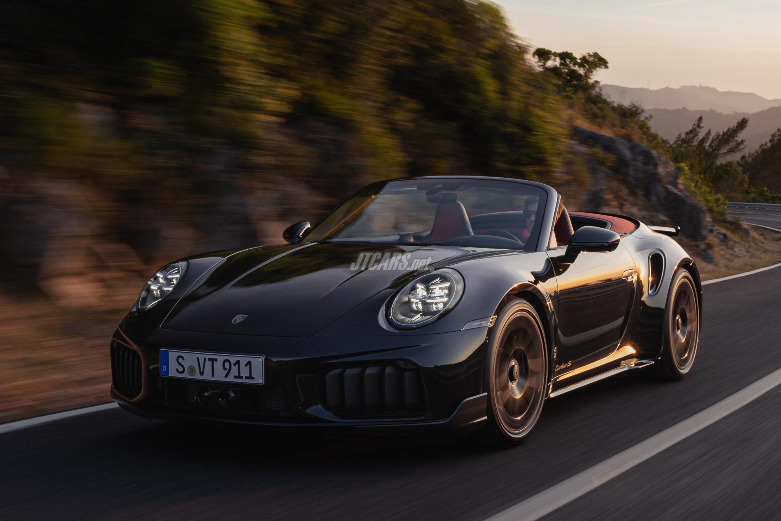 Inside, Turbonite extends to stitching, trim, belts, and controls, complemented by carbon-structured strips, neodyme details, and a perforated microfiber headliner. The coupé is a two-seater by default, with optional rear seats; the cabriolet comes in 2+2 layout.