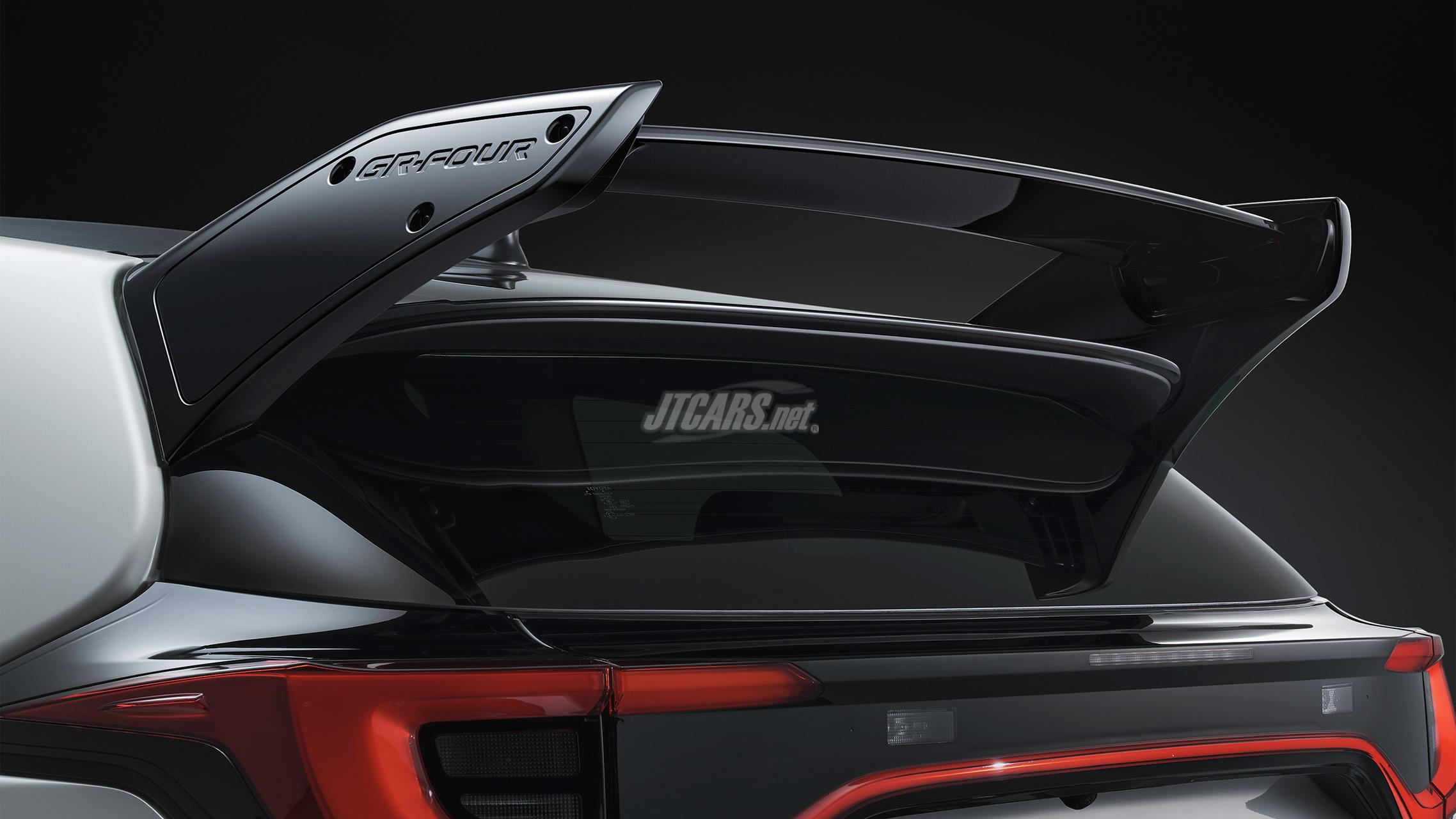 - During high-speed driving, a ducted aluminum hood, which shares the shape of the carbon-fiber hood used on the GRMN Yaris and which was developed by entering a car installed with it in the Japanese Rally Championship, improves cooling by discharging engine compartment heat.