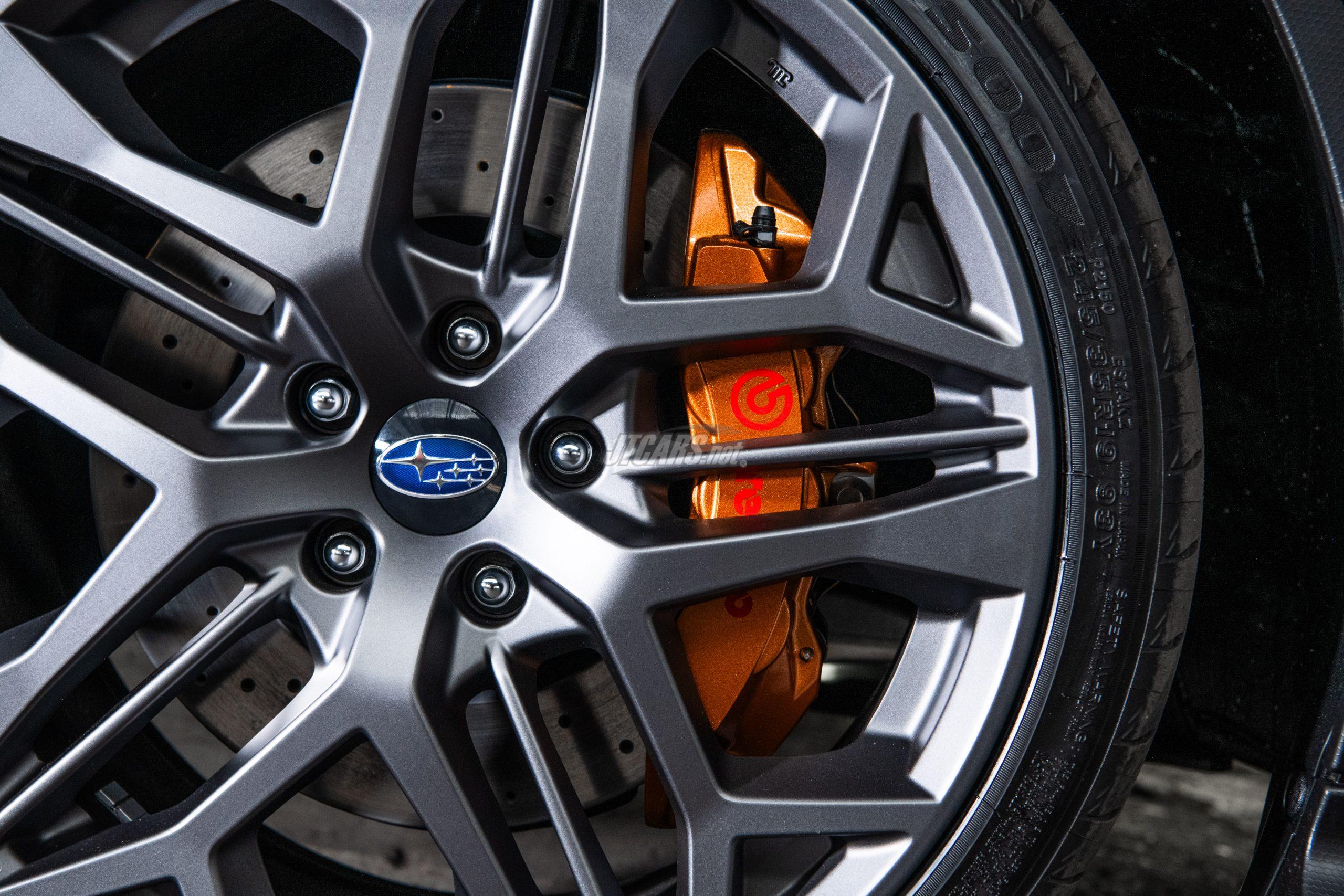 The WRX tS comes equipped with a high-performance Brembo braking system, including 6-piston front and 2-piston rear calipers in signature gold color, and larger pads and rotors. The system provides enhanced stopping power, fade resistance, and pedal feel. The tS also comes standard with 245/35 R19 Bridgestone Potenza S007 tires for increased wet and dry grip and improved braking performance.