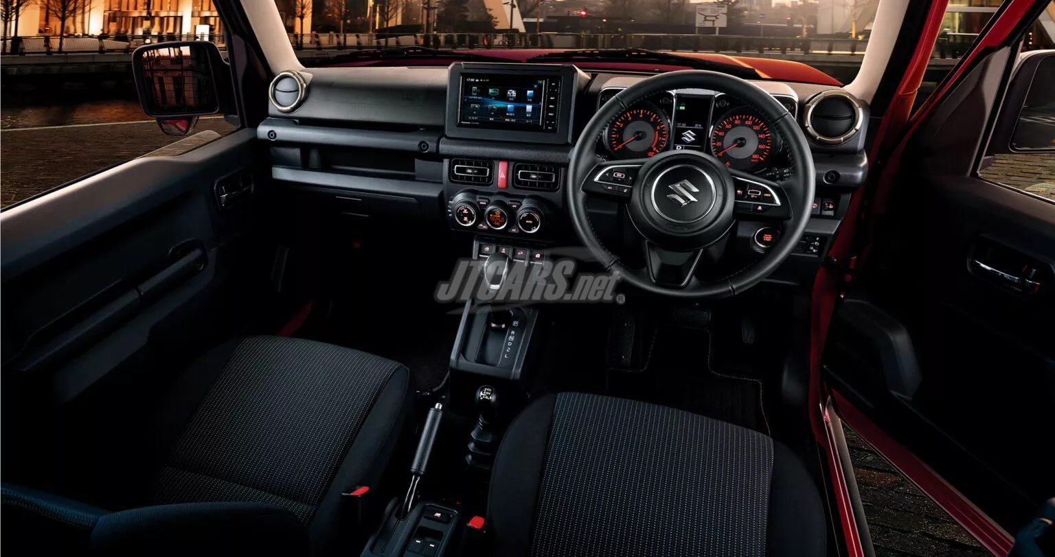 The styling design features a five-slot front grille, which is the symbol of Jimny, decorated with gun-metallic paint and a plated frame to express a sense of quality. In addition, it comes with a lineup of six colors, including new colors for the Jimny series such as Sizzling Red Metallic, which has a vivid pearl red texture and gives an energetic and active impression, and Celestial Blue Pearl Metallic, which gives a feeling of high quality.