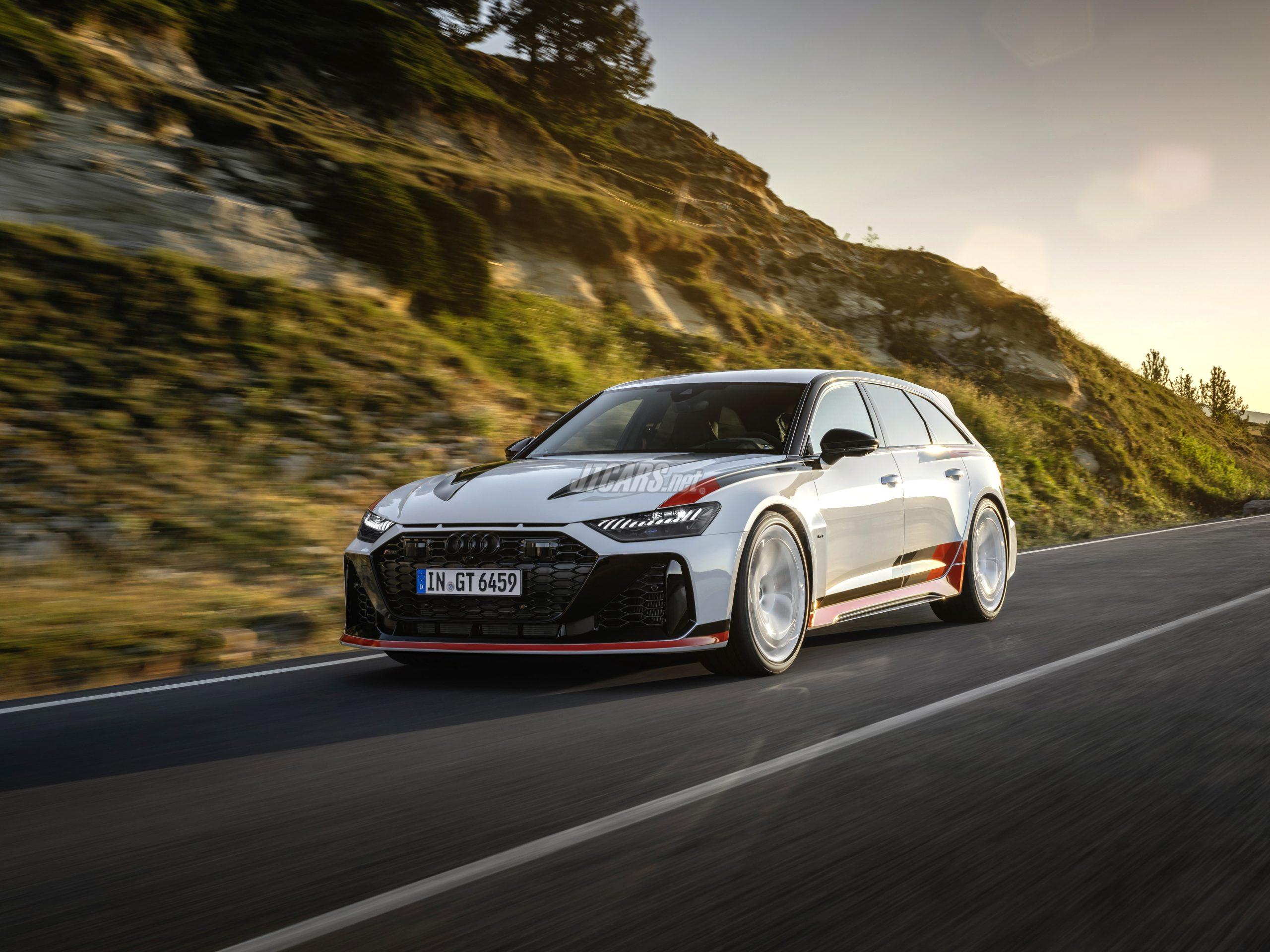 Neckarsulm/Ingolstadt - 02/06/2024. The new Audi RS 6 Avant GT is the pinnacle of the model series. The special edition is packed with exclusive details for both the exterior and the interior. An impressive pass-through roof edge spoiler, redefined diffuser, and 22-inch wheels in a distinctive design underscore its top position in the model series. The interior features high-quality bucket seats, a fresh color combination, and individual numbering in the center console as exclusive accents. Lightweight adjustable coilover suspension unique to the RS 6 Avant GT and a reworked quattro sport differential on the rear axle sharpen the driving experience. The twin-turbocharged eight-cylinder engine in a V-layout has an output of 463 kW (630 PS) and delivers 850 Nm of torque from 2,300 to 4,500 rpm. Delivery of the Audi RS 6 Avant GT will begin in the second quarter 2024, the price starts at 219,355 euro.