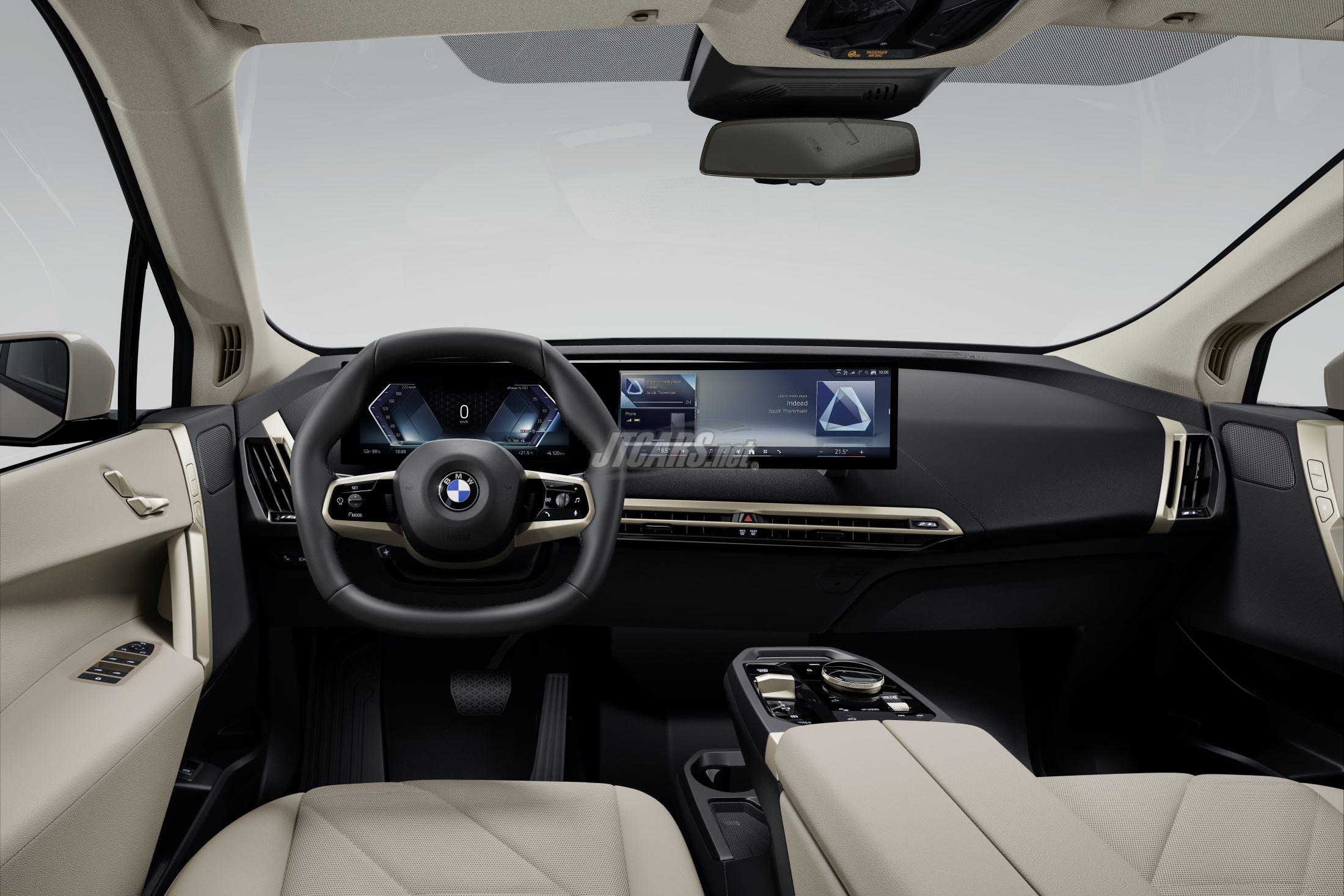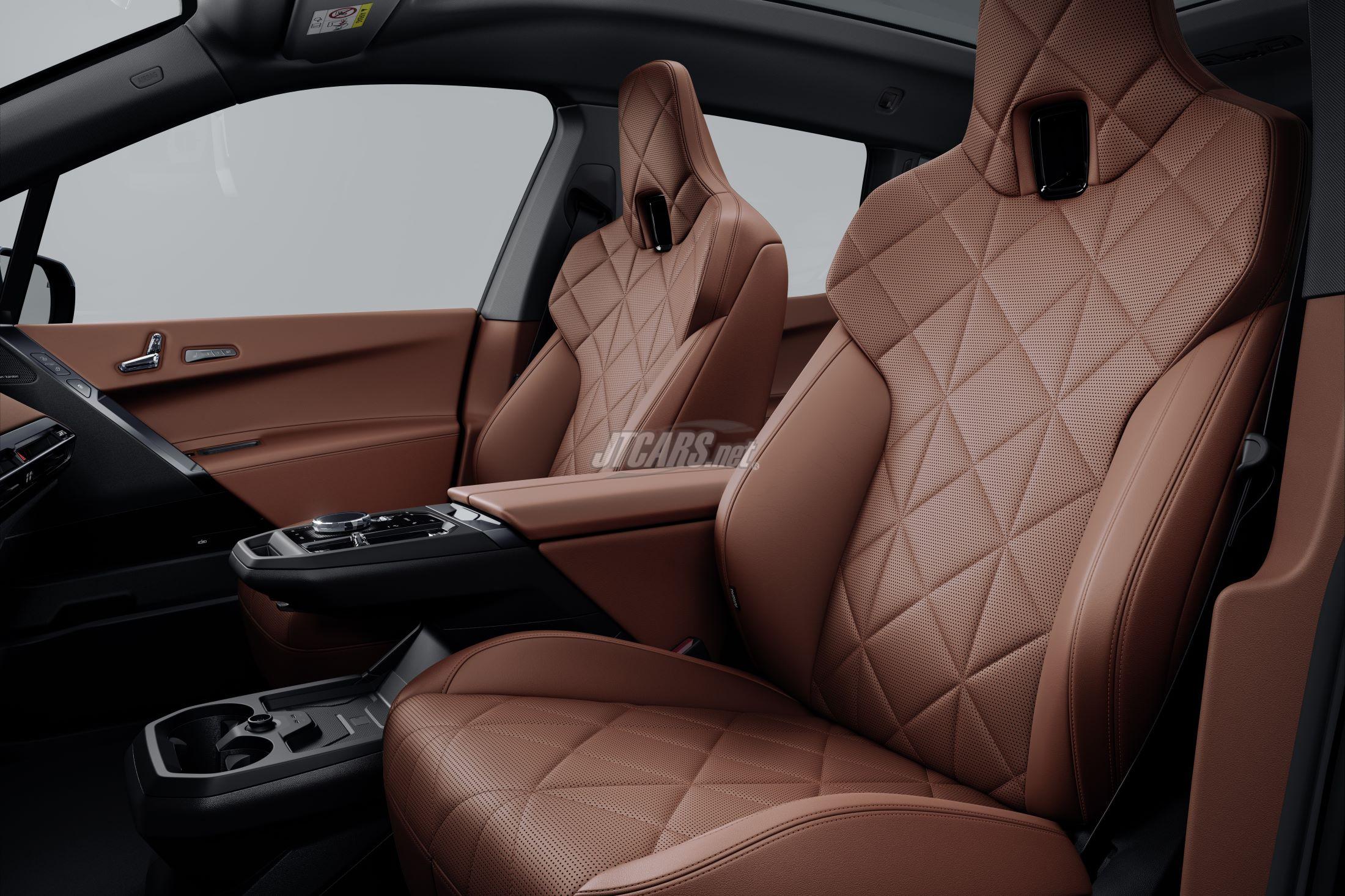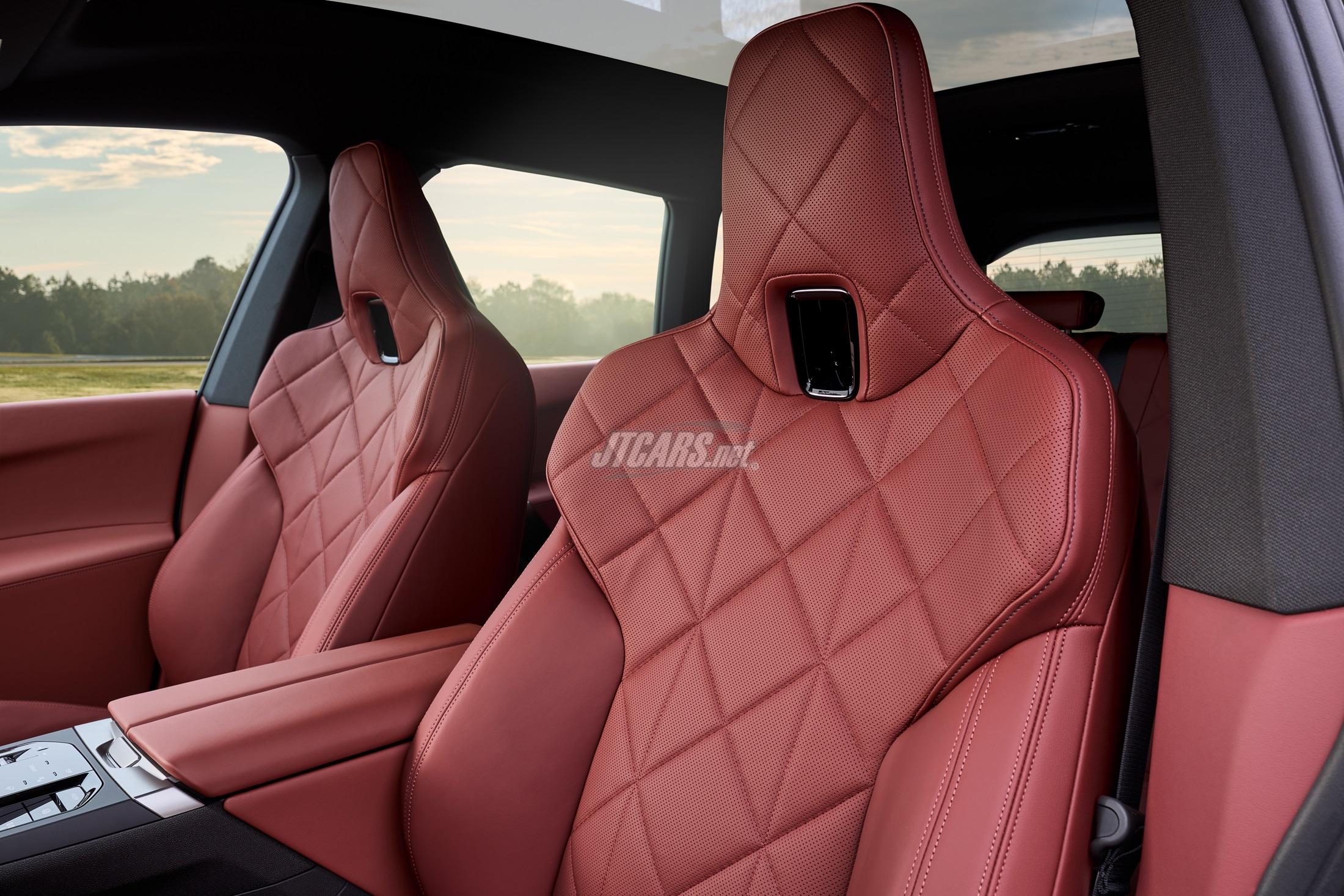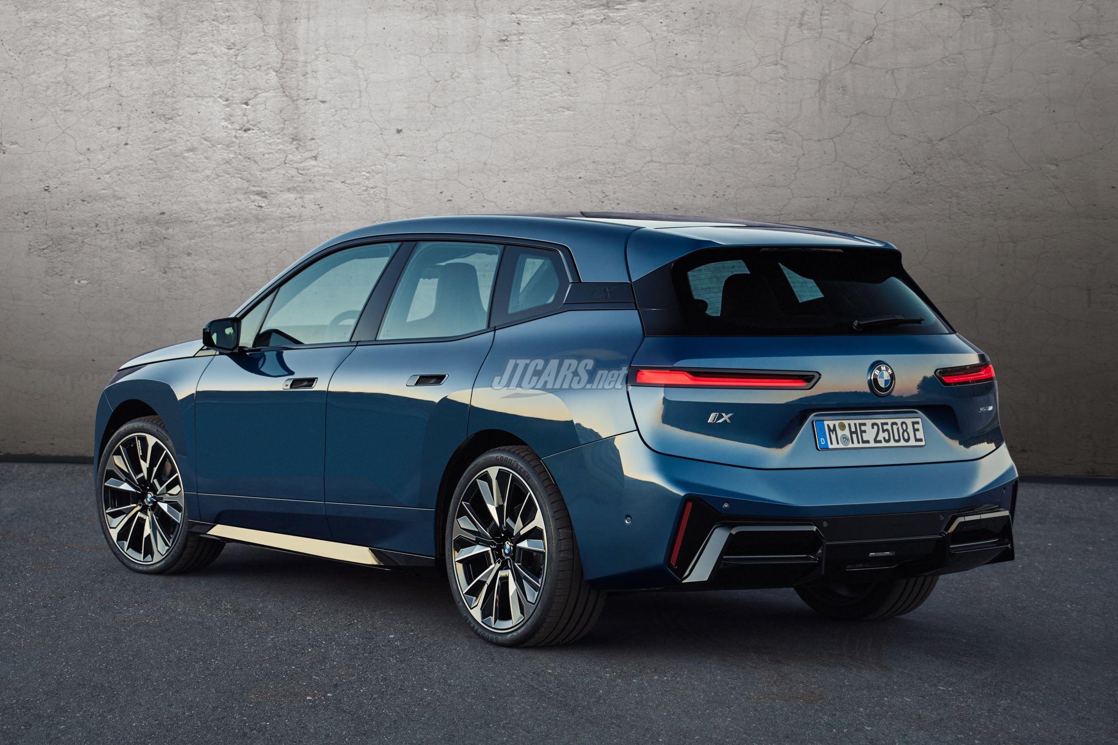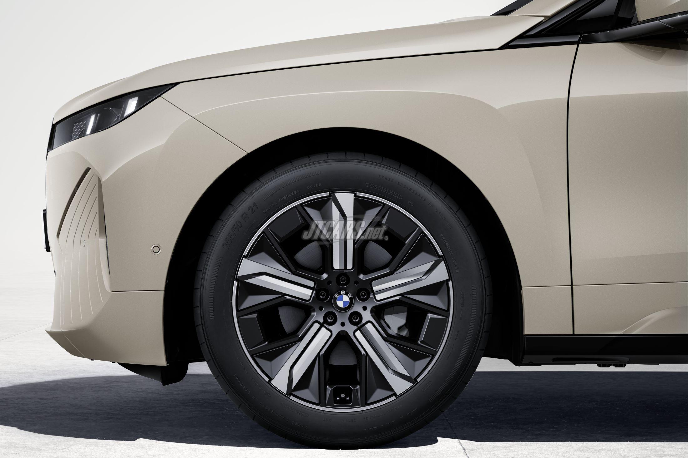 The top-tier iX M70 xDrive includes M Sport features, an exclusive kidney grille with an M logo, black mirror caps, and 22-inch M light-alloy wheels.